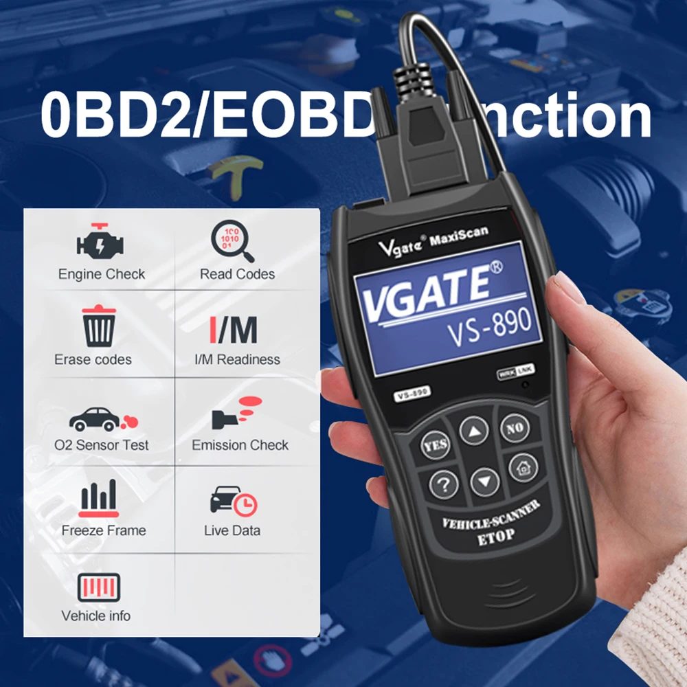 Считыватель кодов VS890 OBD2 последней версии, Универсальный Профессиональный Vgate VS890 Maxiscan, 13 языков, поддержка нескольких протоколов VS890