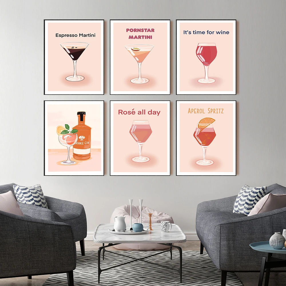 Плакаты и принты в стиле ретро, оранжевый Джин, принт с коктейлями, Картина на холсте, настенные картины для кухни, комнаты, домашний декор, без рамки
