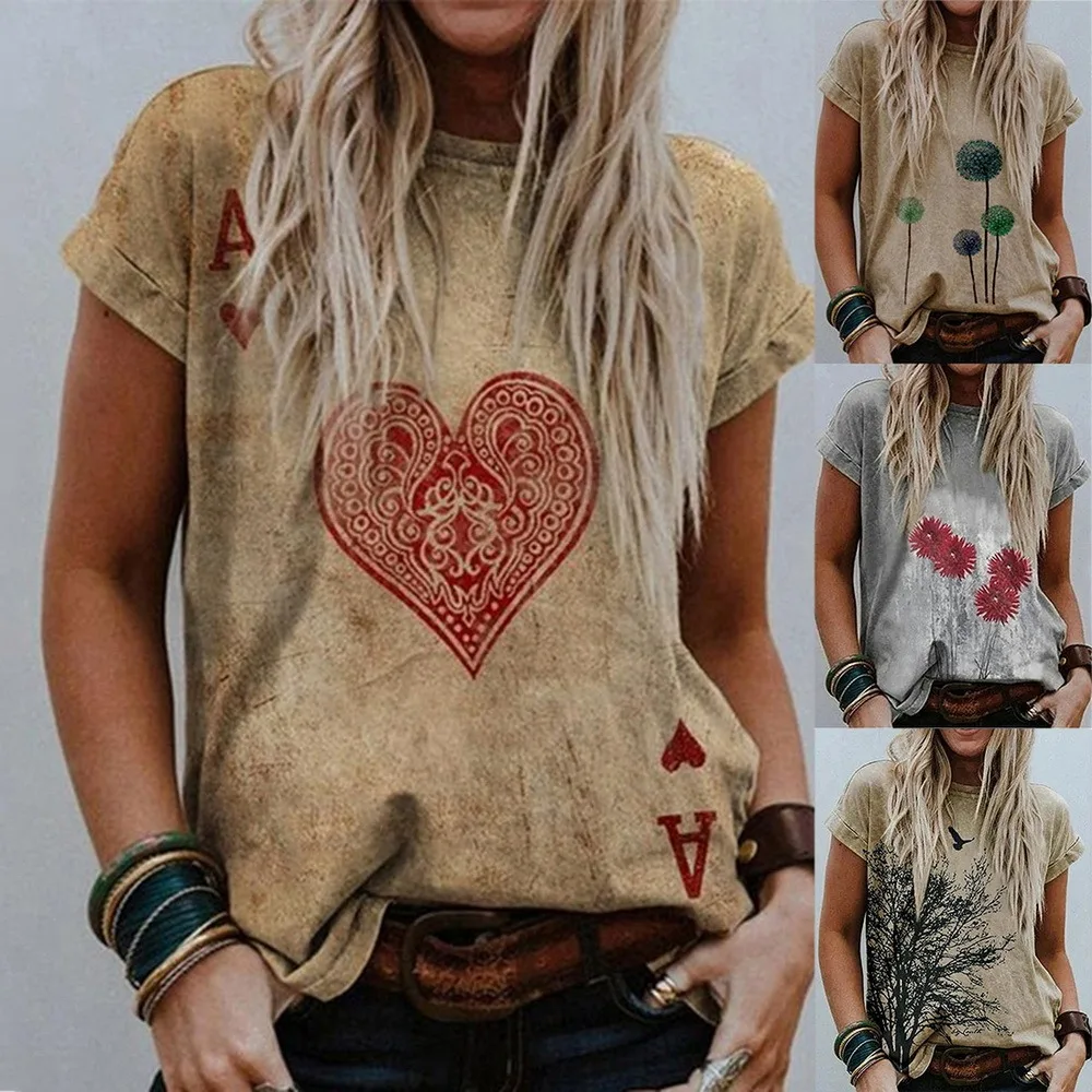 Футболка женская с коротким рукавом, винтажный Повседневный пуловер с цветочным принтом, топ с принтом сердец, на лето