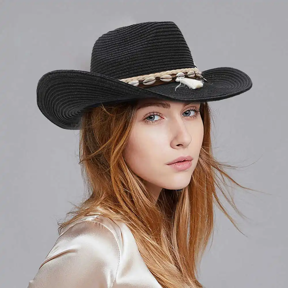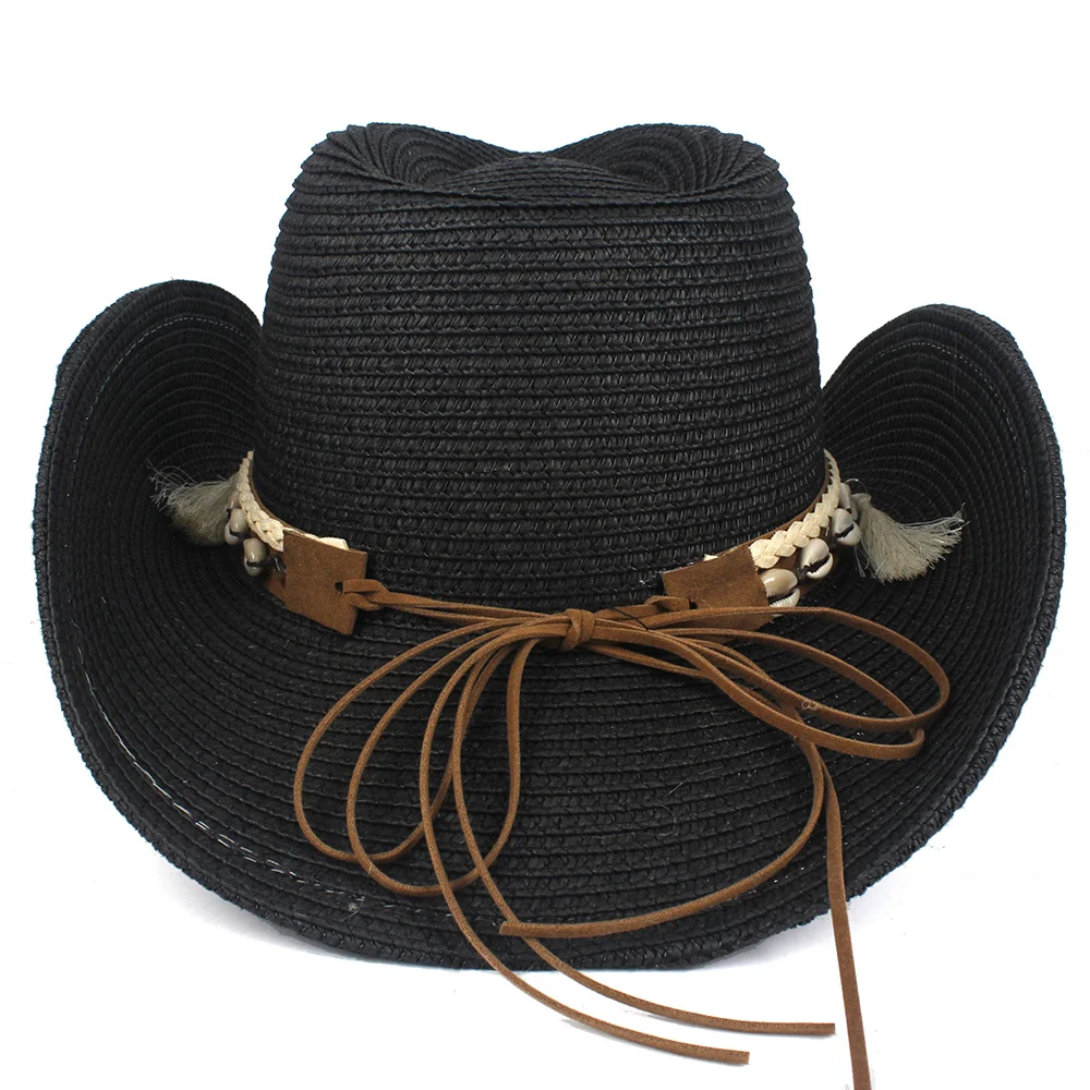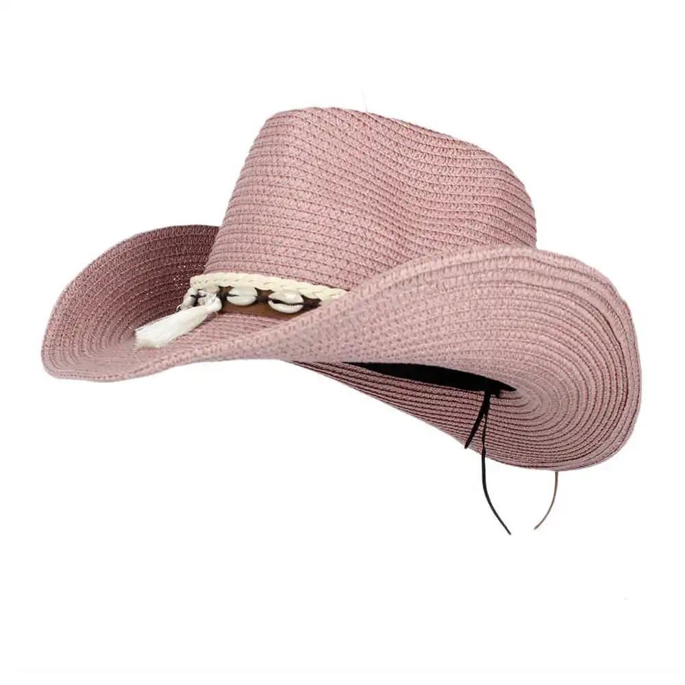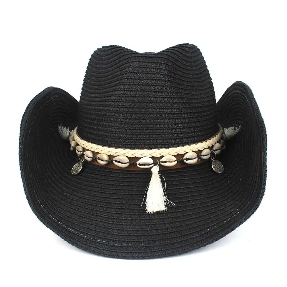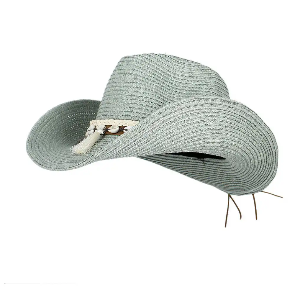 Шляпа с бахромой из ракушек для мужчин и женщин, соломенная ковбойс...
