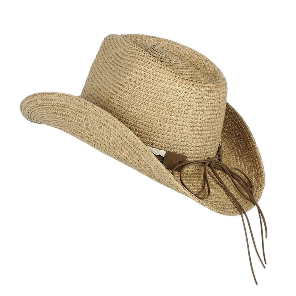 Шляпа Женская Ковбойская в западном стиле, Соломенная Панама сомбреро для пляжа, от солнца Cowgirl, размер 56-58 см