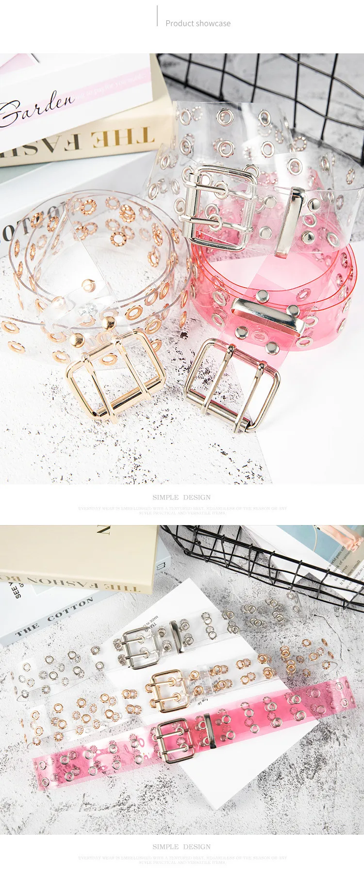 2021 двухрядный прозрачный ремень из ПВХ для женщин, модные белые поясные брюки с пряжкой, прозрачные ремни, дамские джинсы, ремень с люверсами