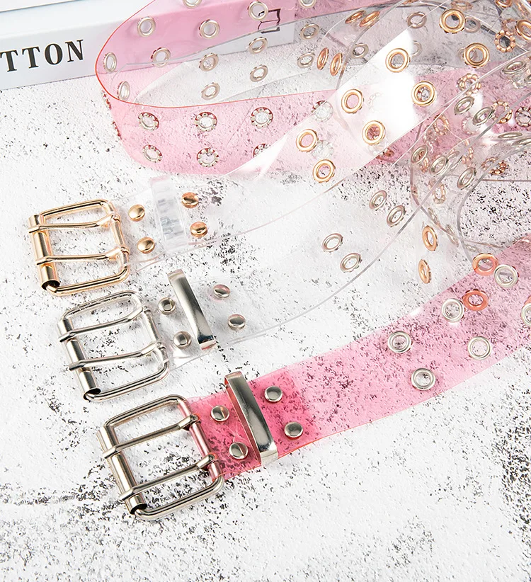 2021 Two Row PVC Clear BeltWomen Fashion Pin Buckle