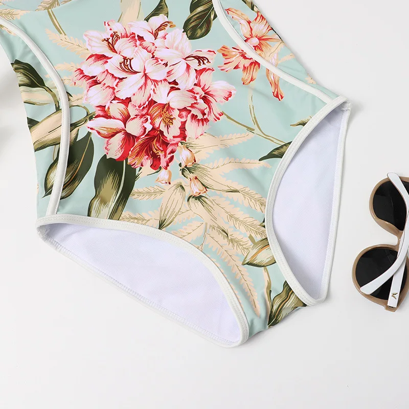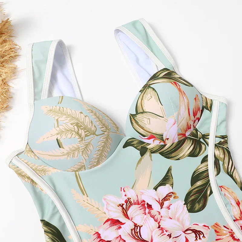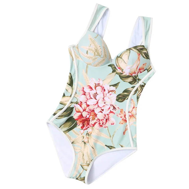 Пляжный Купальник женский 2021 новый цельный Ретро размера плюс купальник женские с высокой талией сексуальные купальники с принтом пуш-ап в Корейском стиле большого размера