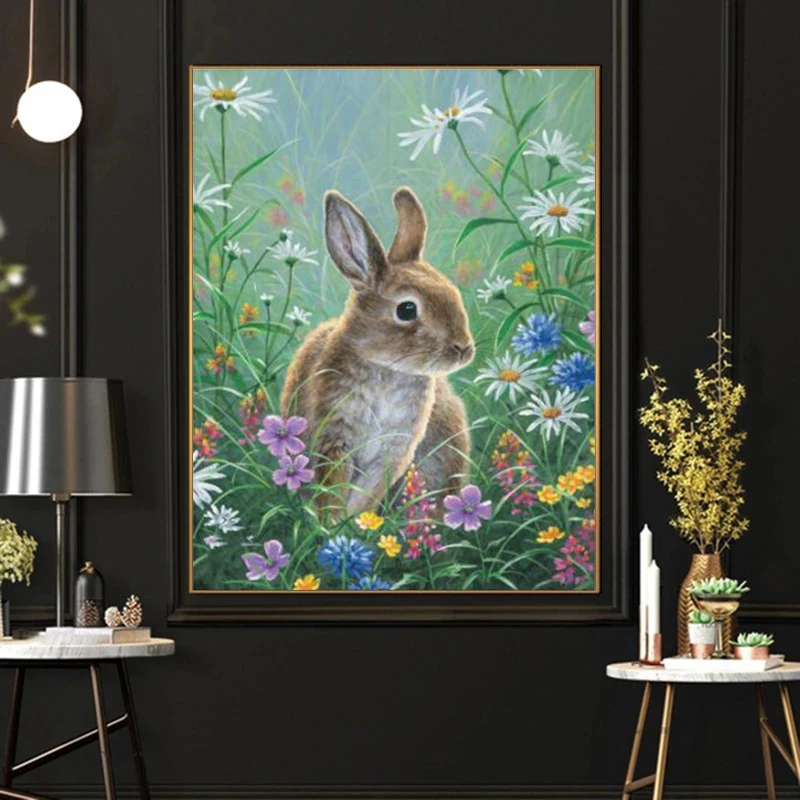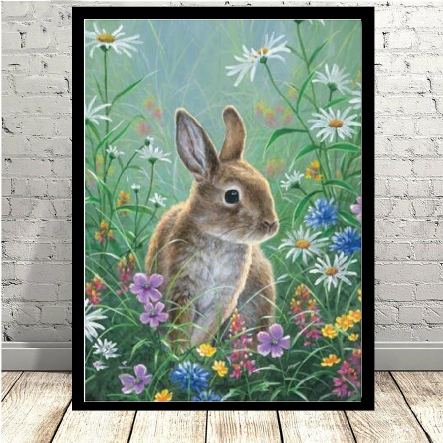 5D алмазная живопись сделай сам, мультяшный милый кролик, цветок, кролик, полная вышивка крестиком, искусство высокого качества, животное, украшение для дома