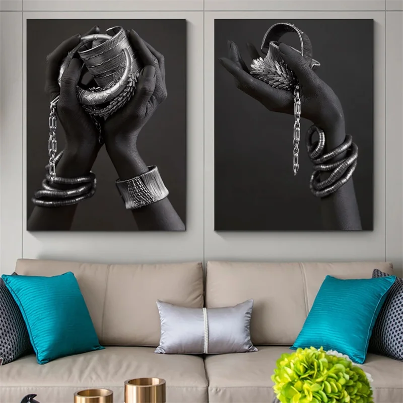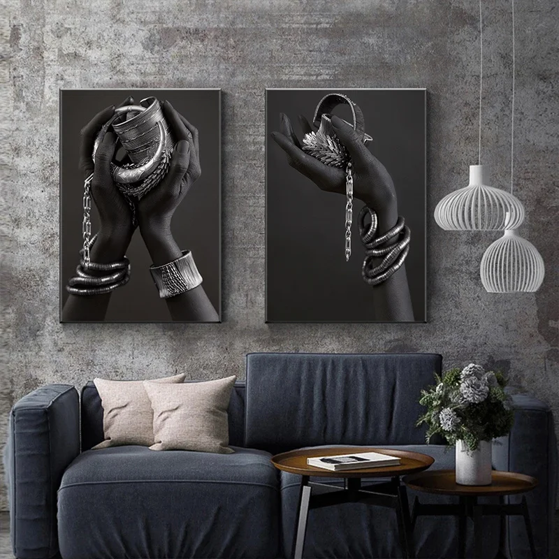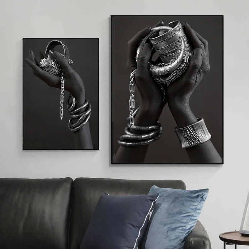 Африканская черная кожа женщины серебряный браслет искусство холст печать картина Современная Гостиная Настенная картина украшение дома плакат