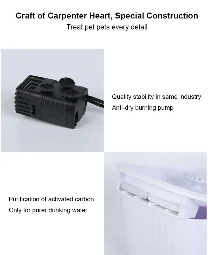 Фильтрация циркуляции 1,360 °. 24 часа без прерывистого очищения: двойная фильтрация активированного угля делает циркулирующую воду чистой, а также высокие стандарты соответствия требованиям позволяют домашним животным держаться подальше от желудочно-кишечных заболеваний.