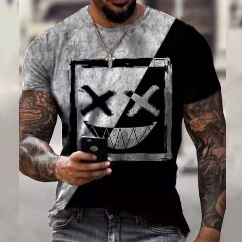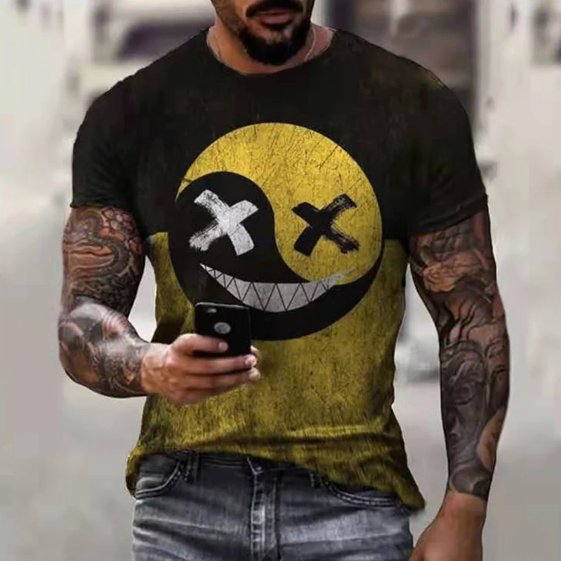 Футболка мужская оверсайз с коротким рукавом, Повседневный пуловер в стиле хип-хоп с 3d принтом и смайликом, детский топ, лето