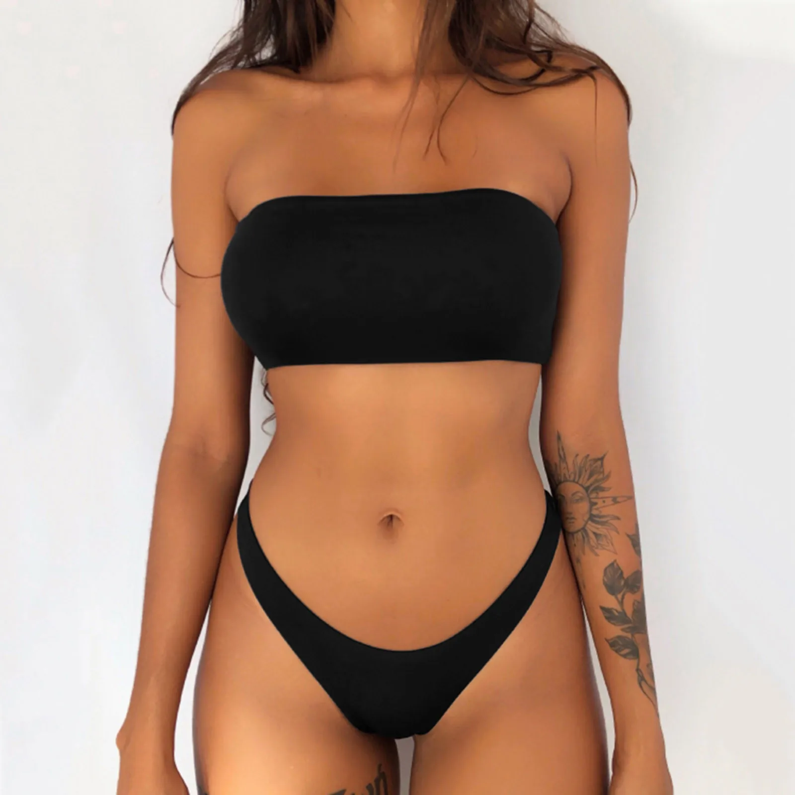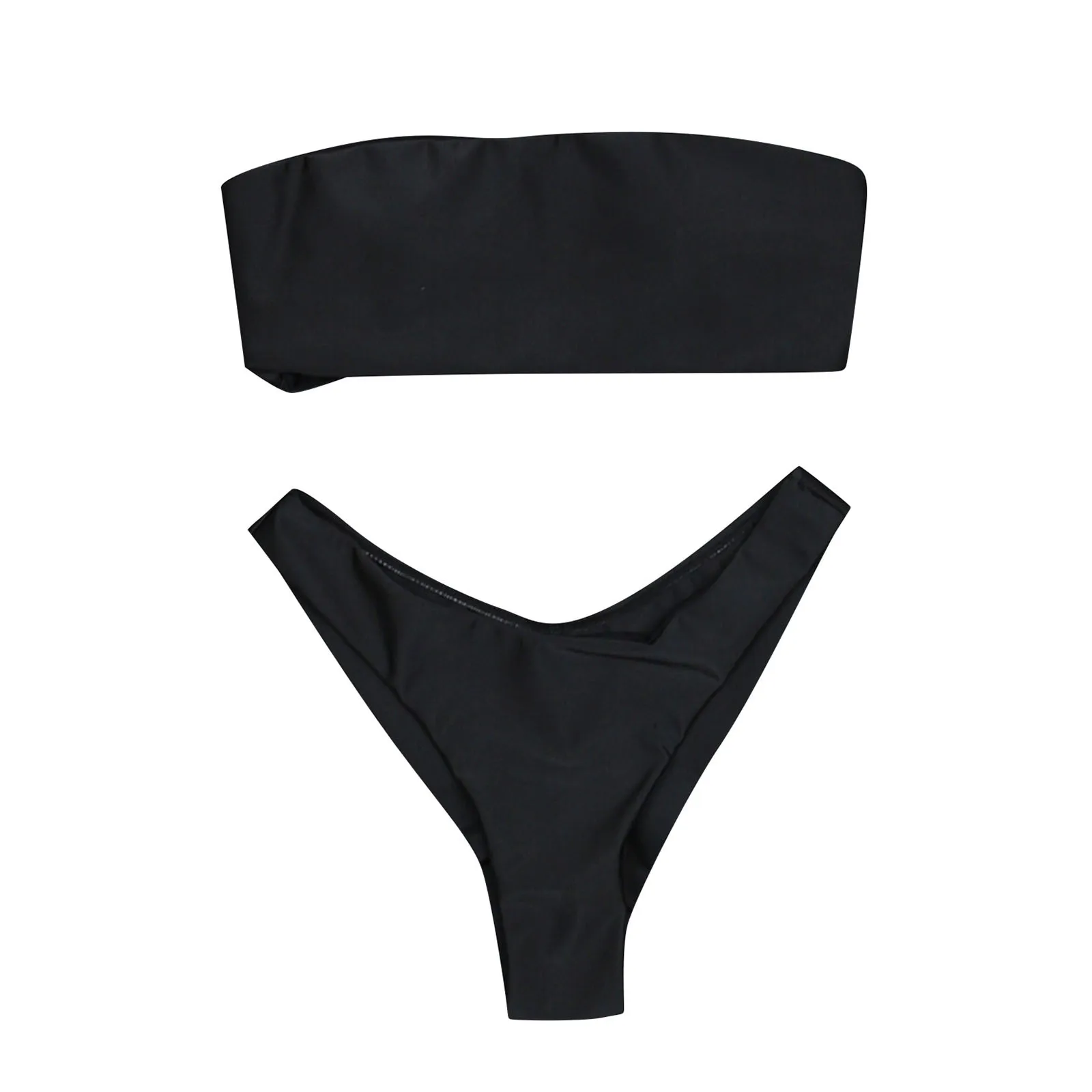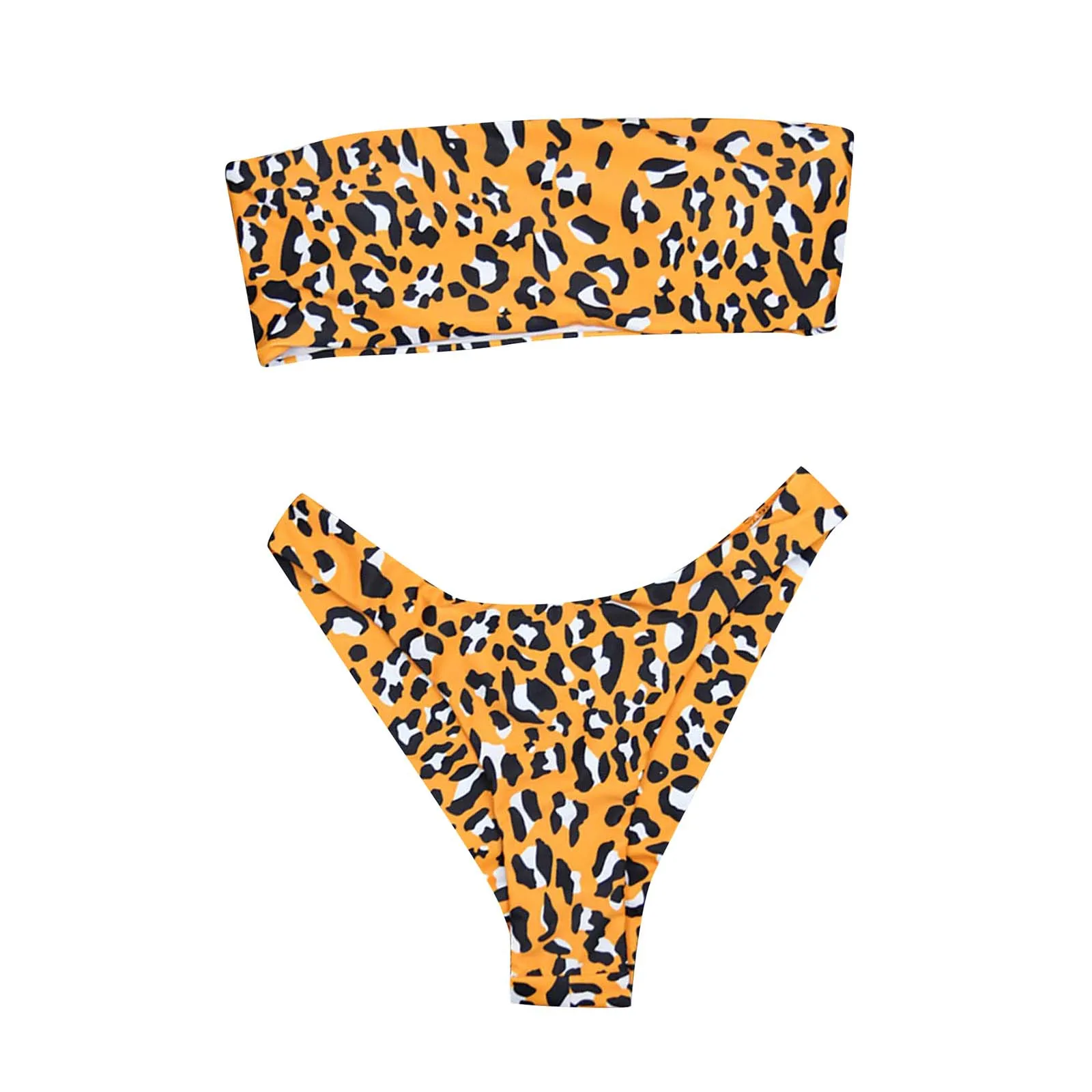 Женский однотонный комплект бикини с принтом, купальник с высокой талией, бикини 2021, пуш-ап Бандо, женский пляжный купальный костюм с открытыми плечами, купальники #1G