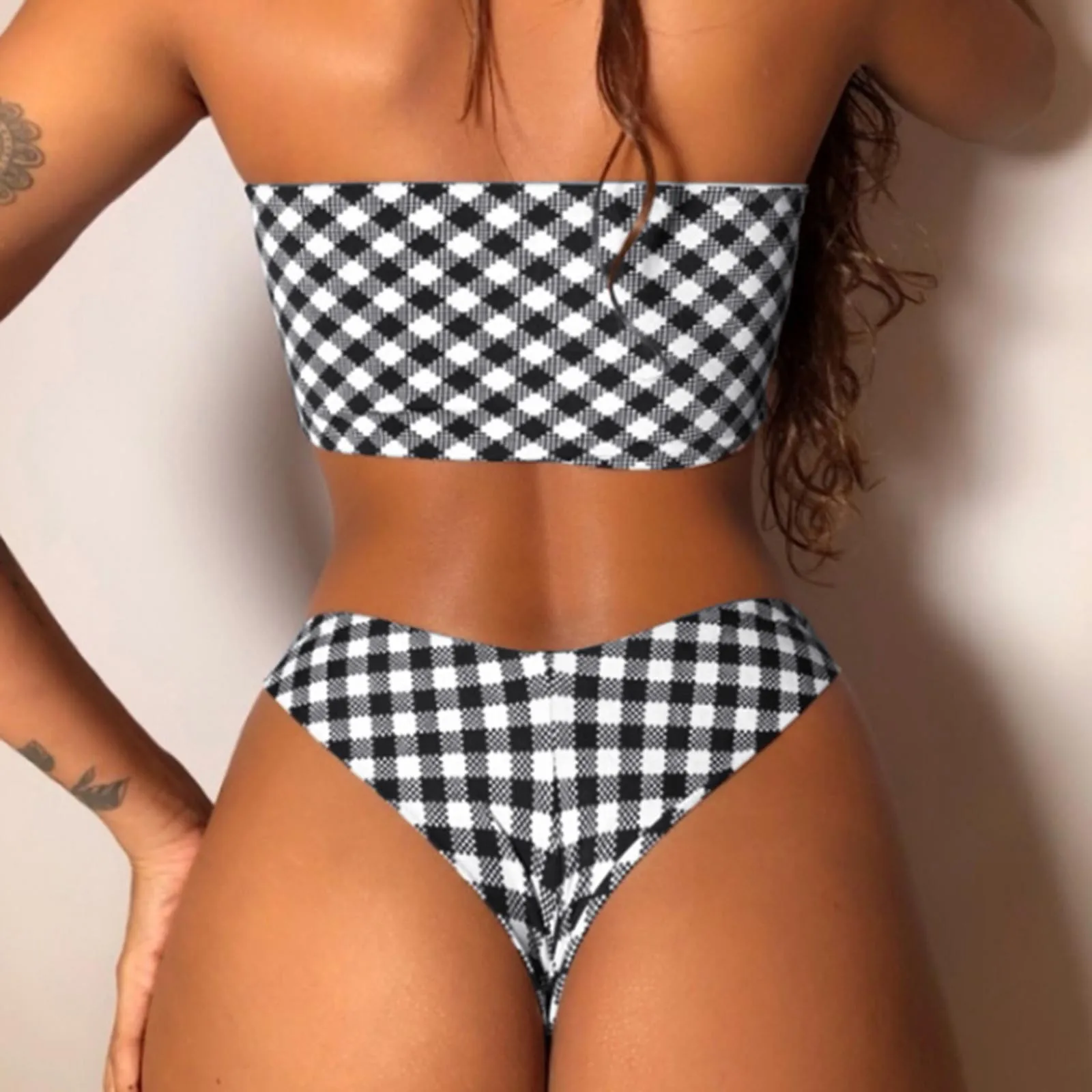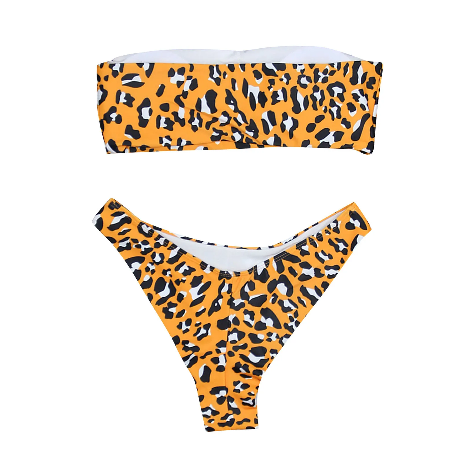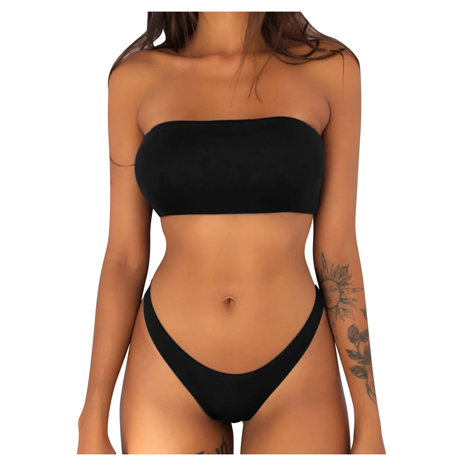 Женский однотонный комплект бикини с принтом, купальник с высокой талией, бикини 2021, пуш-ап Бандо, женский пляжный купальный костюм с открытыми плечами, купальники #1G