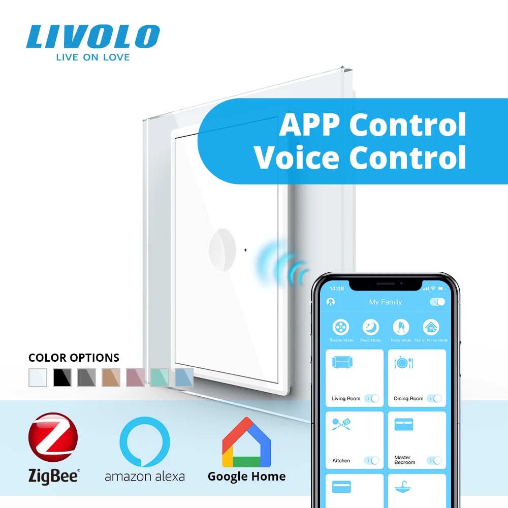 Настенный сенсорный светильник ель LIVOLO Zigbee, выключатель с голосовым управлением и управлением голосом, из закаленного хрусталя, для умного дома, с Wi-Fi
