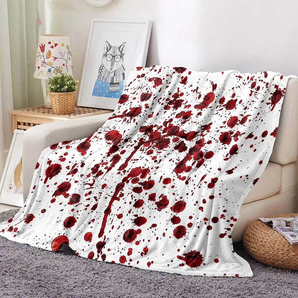 Женское, белое одеяло с красным рисунком брызг крови, легкое фланелевое одеяло для дивана, кровати, дивана