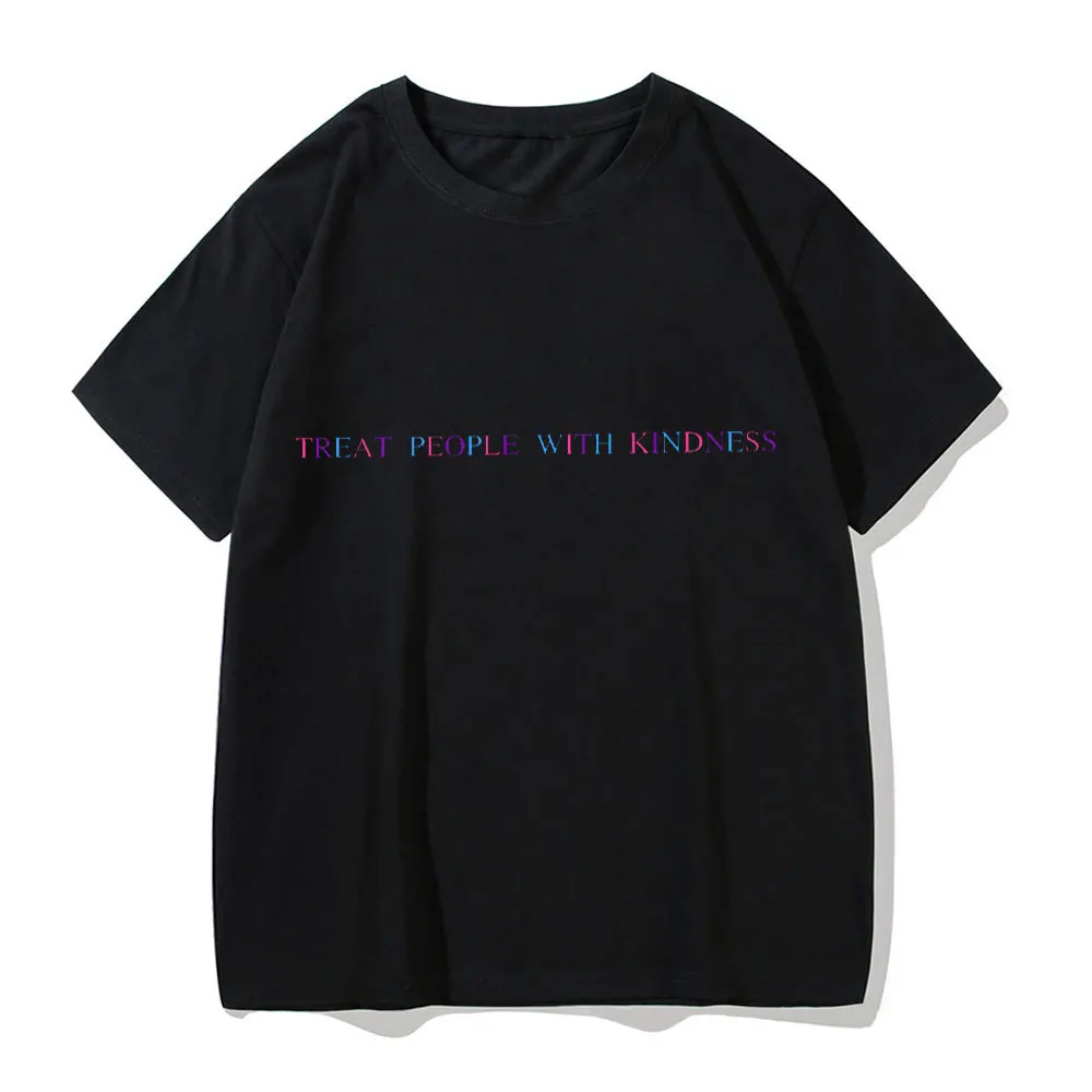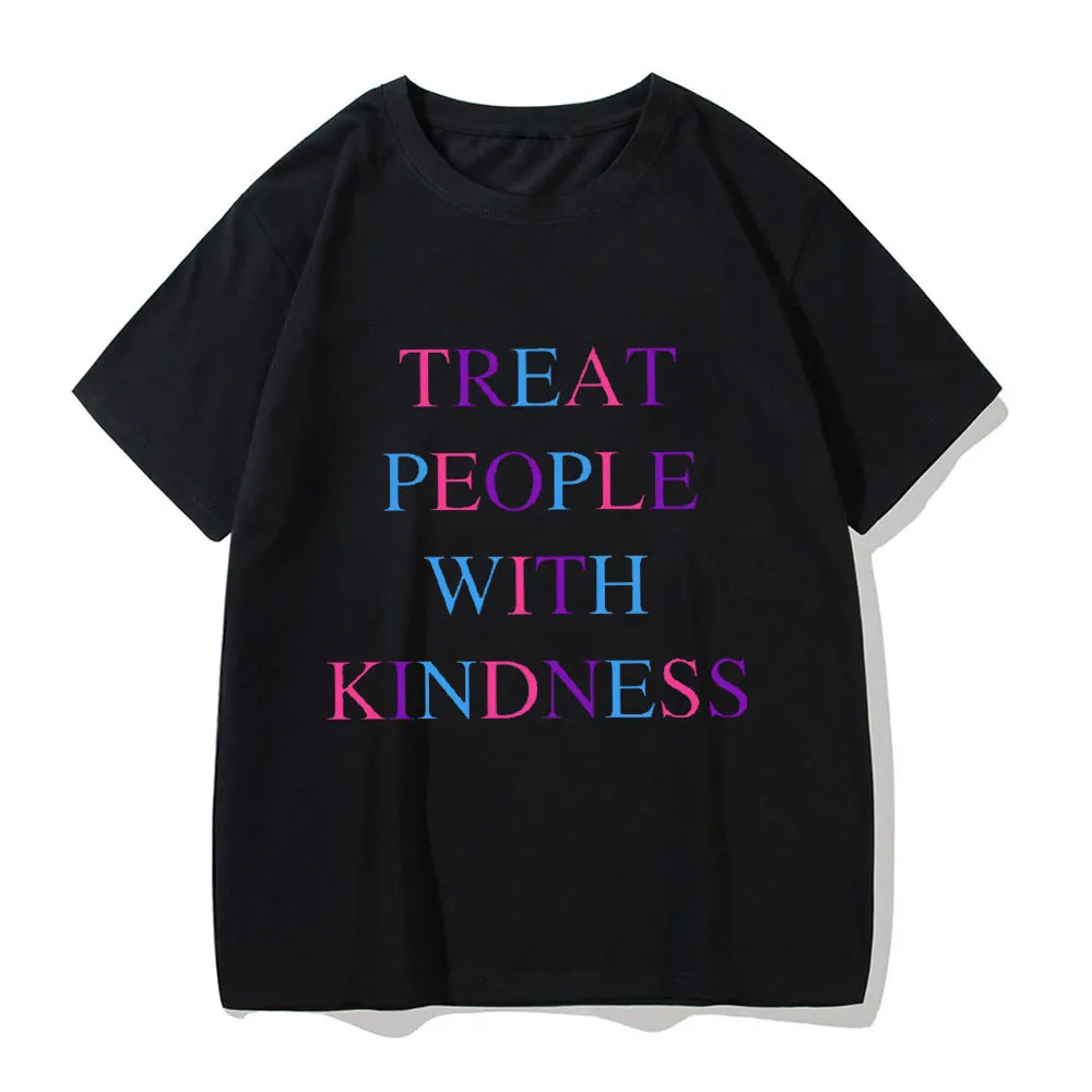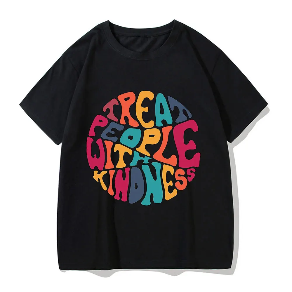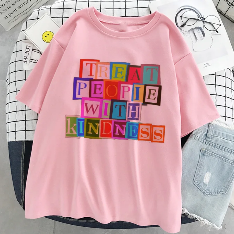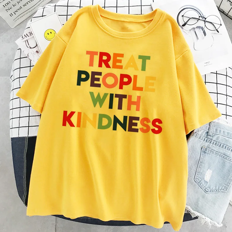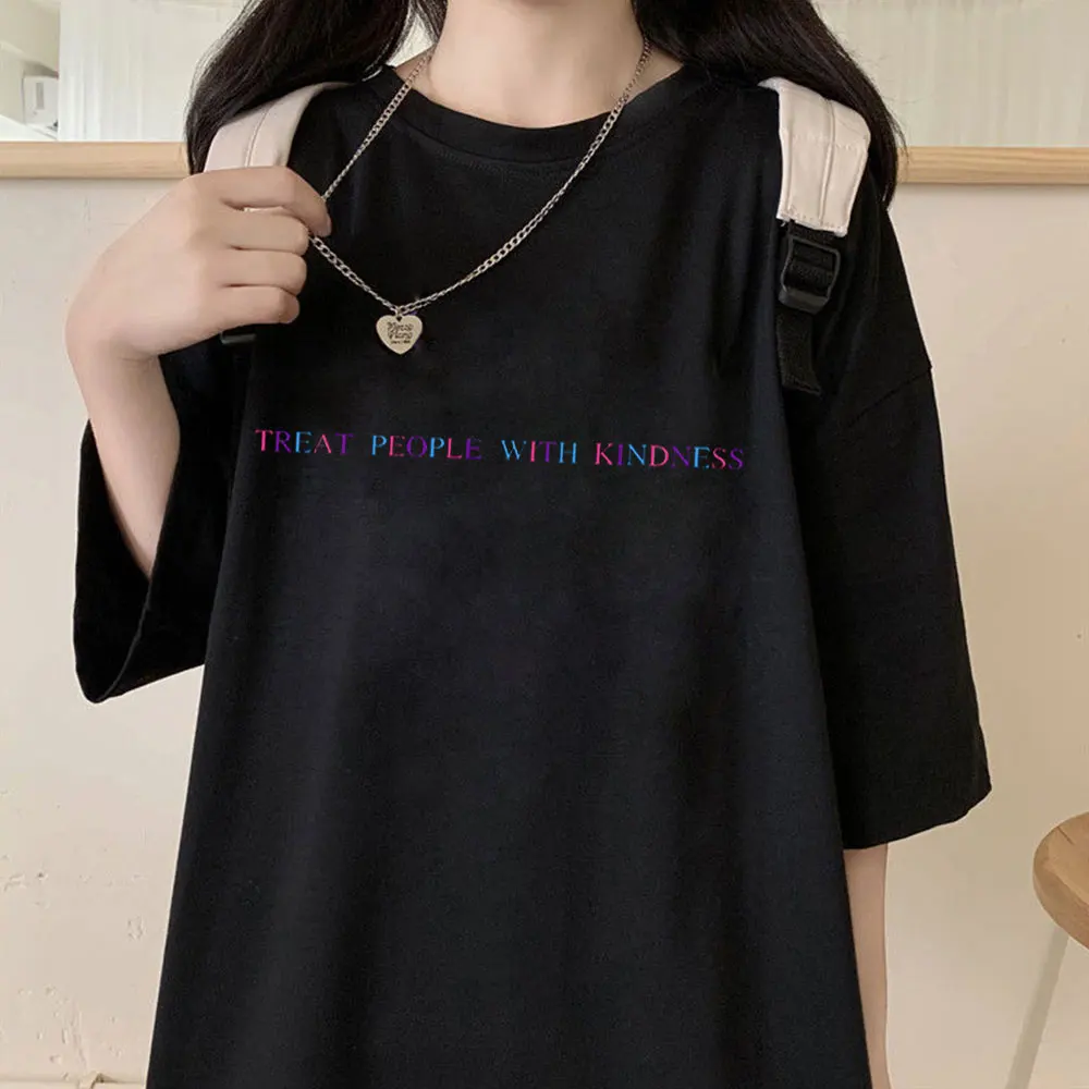 Черная футболка большого размера с надписью обращайтесь к людям с добротой, женская футболка, летняя повседневная модная футболка в Корейском стиле, Повседневная футболка в стиле хип-хоп