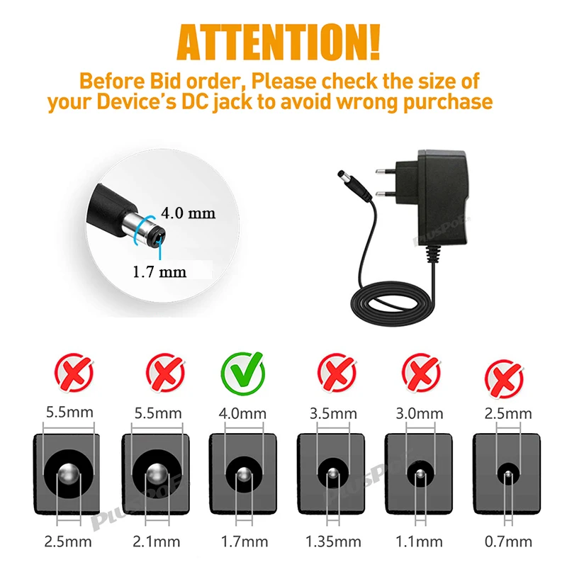 1. Вход напряжение: 100-240V 50/60 ч2. Выходное напряжение: 6 В постоянного тока 0.5A 1A3. Форма: как показано ниже, физическая карта 1 метр в длину4. Разъем постоянного тока: 4,0*1,7 мм5. Цвет: черный6. Полярность: внутренняя положительная и внешняя отрицательная