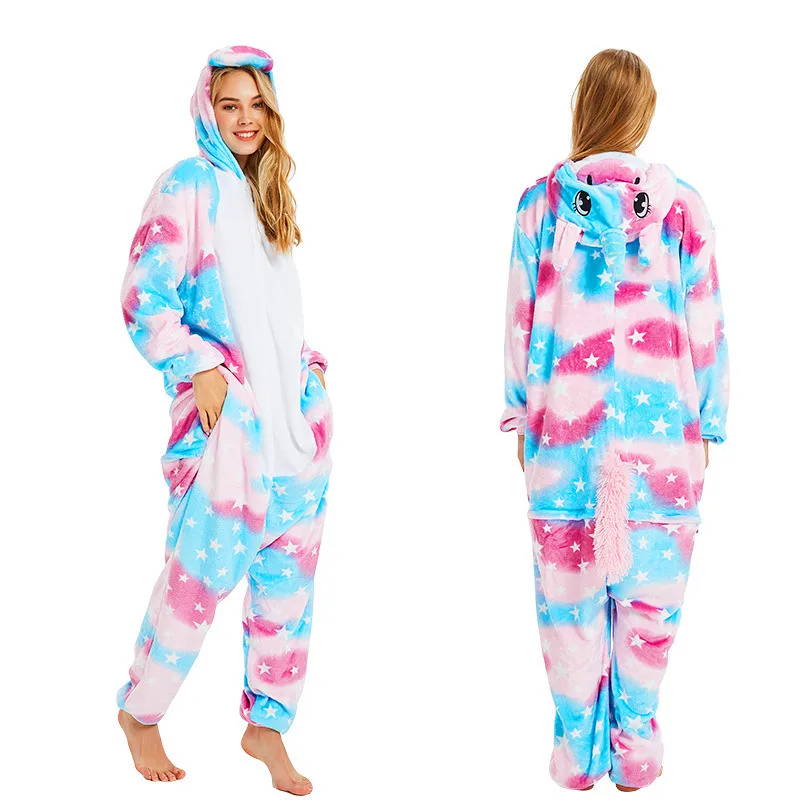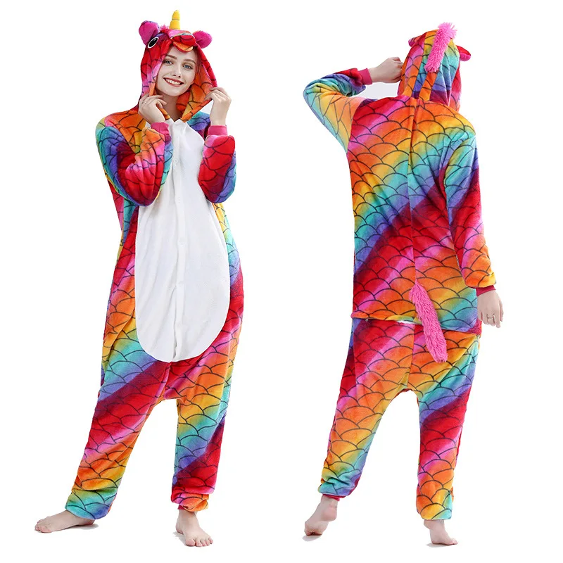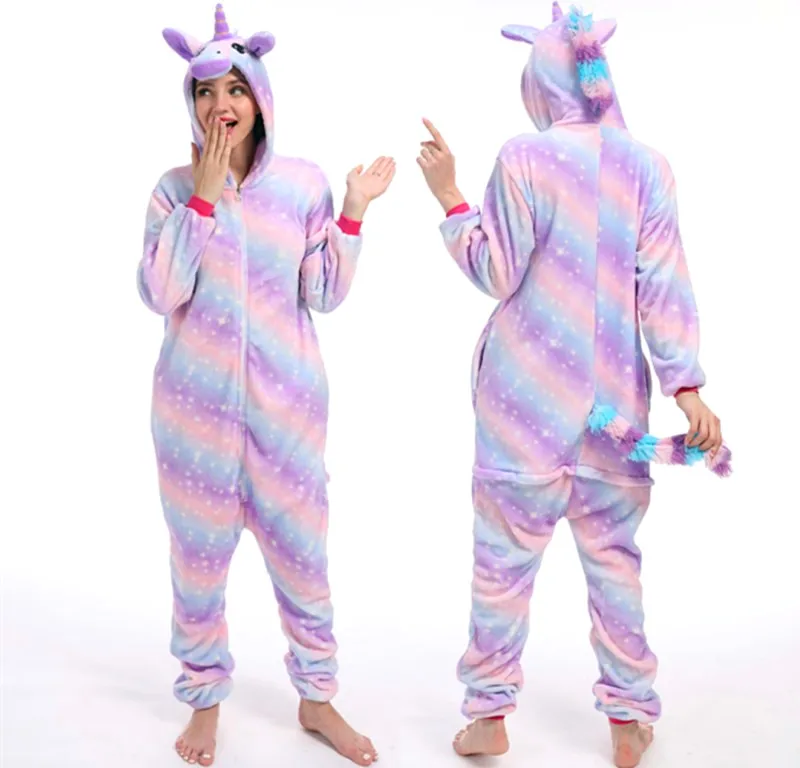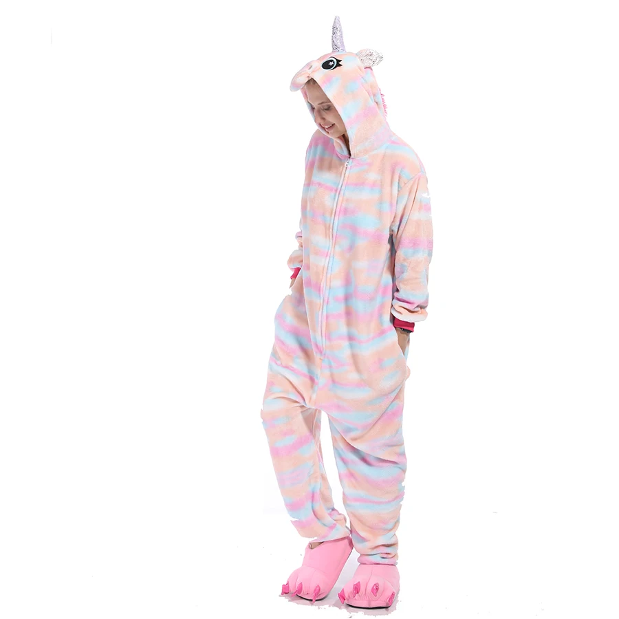 Комбинезон унисекс с единорогом, зимняя Фланелевая пижама с тигровым рисунком, комбинезон Тоторо, Детская Женская одежда для сна