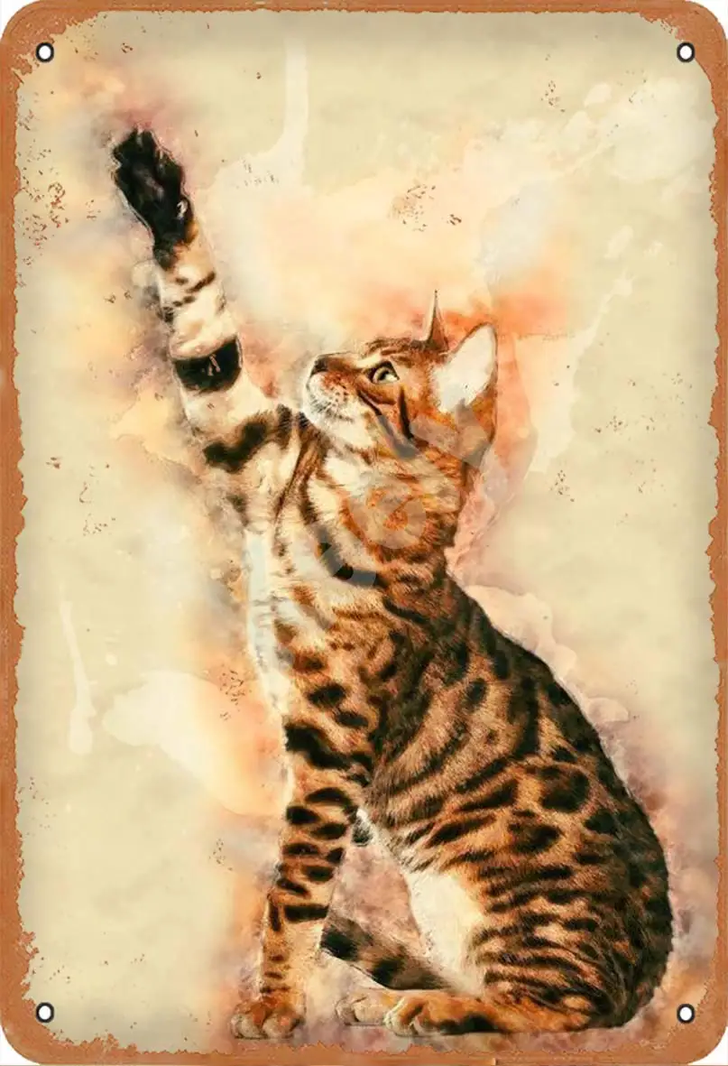 Бенгальский Кот металлическая винтажная жестяная вывеска украшение стены 12x8 дюймов для кафе кофе баров ресторанов пабов человек пещера декоративная