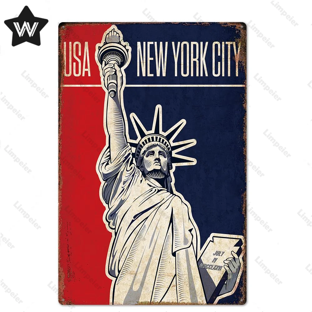 Металлическая вывеска в стиле Нью-Йорка, фигурка свободы, жестяная вывеска, винтажные настенные художественные наклейки, металлические таблички для украшения мужской пещеры