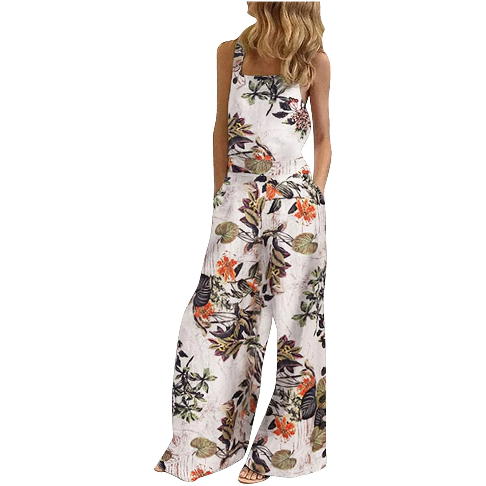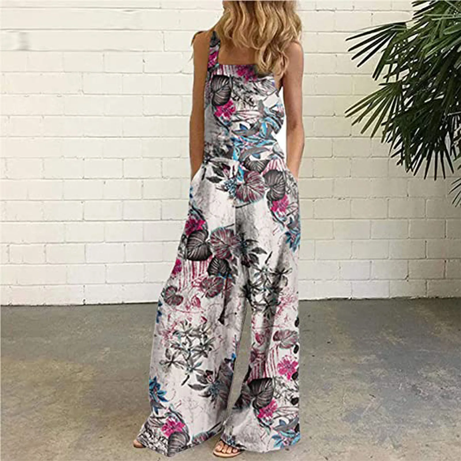 Комбинезон женский с цветочным принтом, модный Ромпер на пуговицах, комбинезон с карманами, лето