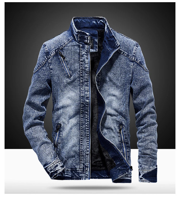 Мужские джинсовые куртки, винтажные хлопковые приталенные джинсовые пальто с воротником-стойкой и длинным рукавом, повседневная шерстяная подкладка