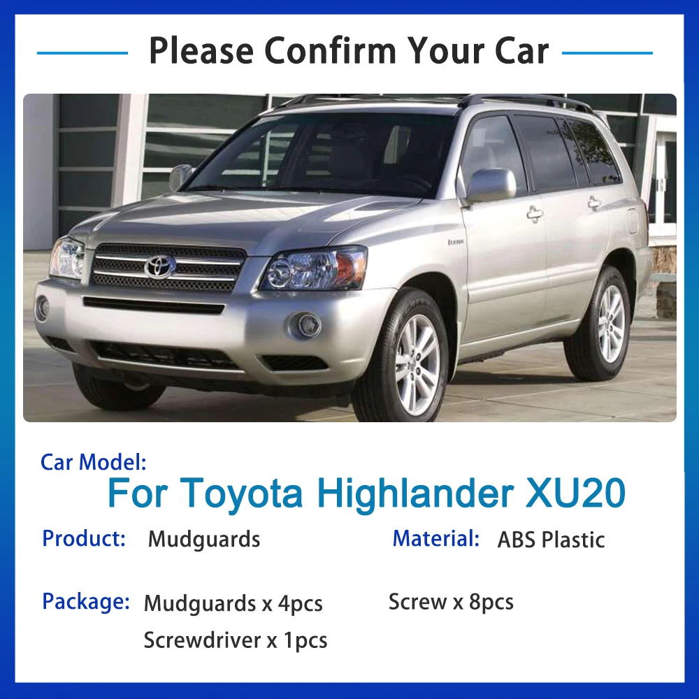 Для Toyota Highlander XU20 2001 ~ 2007, автомобильный брызговик 4x крыло брызговиков, аксессуары для стайлинга, новое обновление, брызговик, защита от брызг 2001 2002 2003 2004 2005 2006 2007