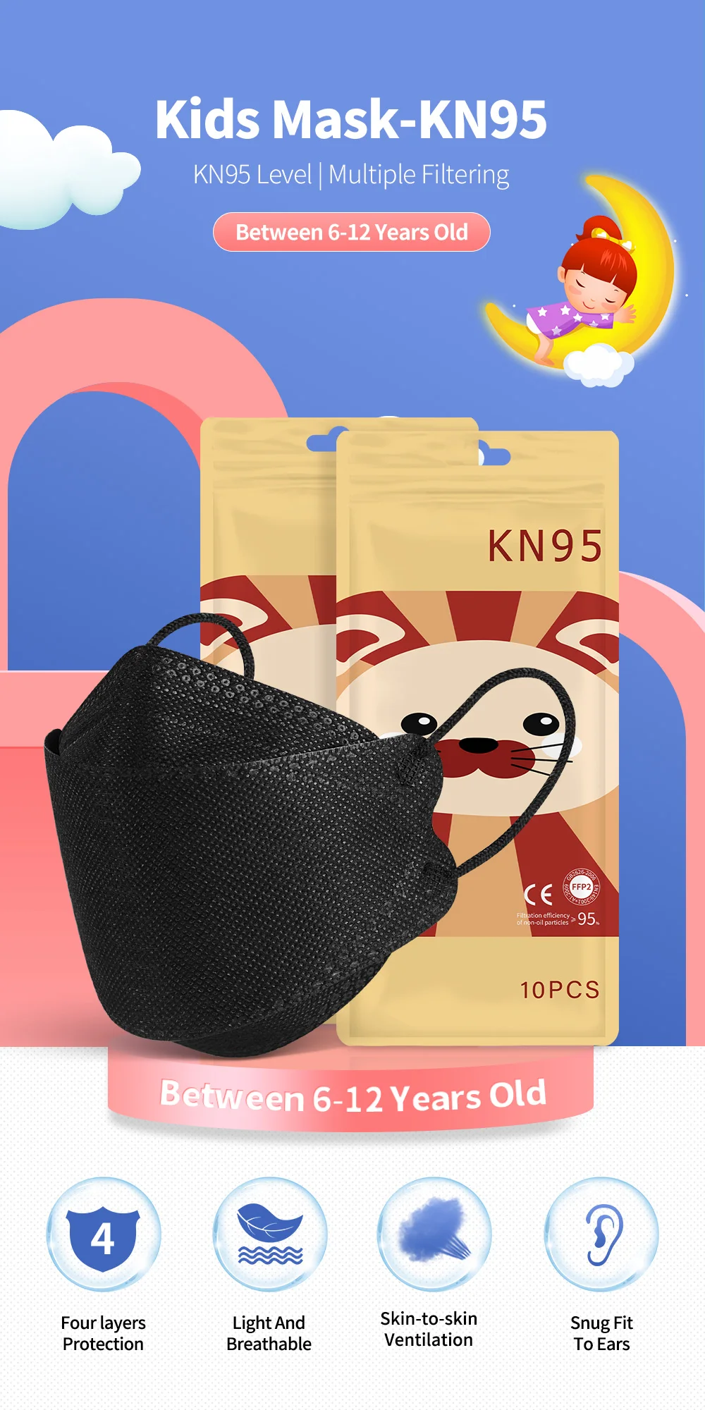10-100 шт. ffp2mask ребенок рыбы маска kn95mask 4 слоя KN95 маска Детские пылевой фильтр FFP2 уход за кожей лица маска CE респиратор mascarillas