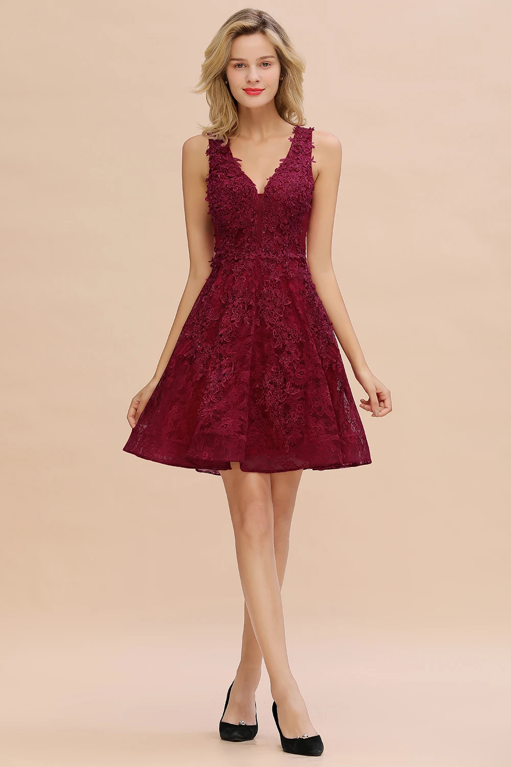 Короткие бордовые кружевные платья подружки невесты 2020 розовое те...