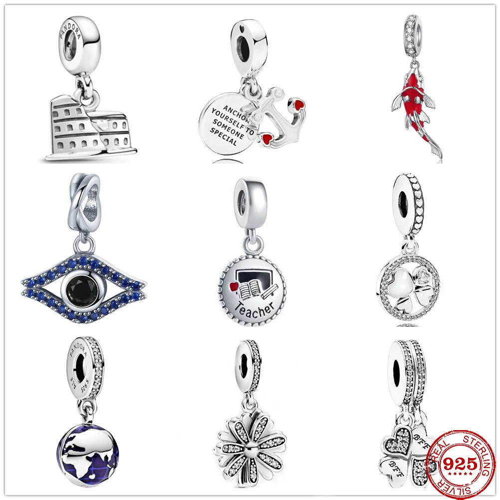 Шарм-цветок из серебра 925 пробы, четыре листа, для браслета Пандоры
