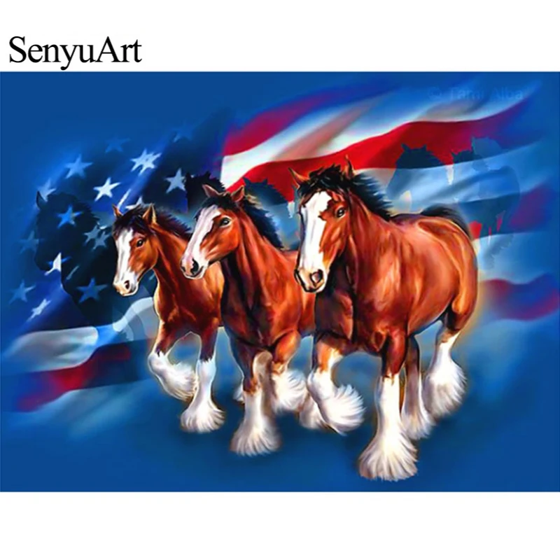 SenyuArt Алмазная вышивка, животные, лошадь, краска по номерам, Набор для вышивки крестиком, полная круглая Стразы 5d, Алмазная мозаика для творчества