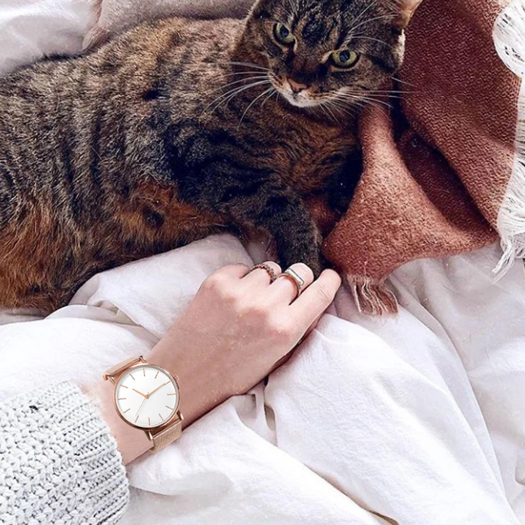 Спортивные женские часы с сетчатым ремешком, ультратонкие минималис...