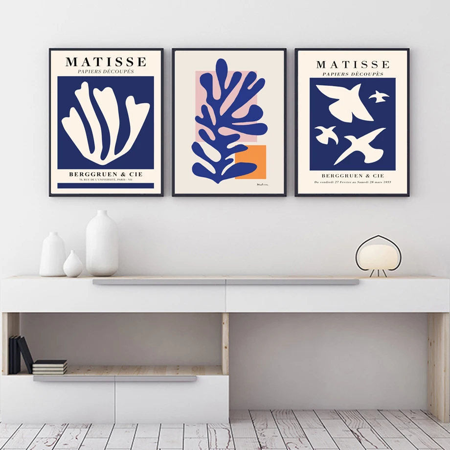 Абстрактный постер матиссе, синий лист, цветок, коралл, боди-арт, живопись на искусстве, для гостиной, галереи, офиса