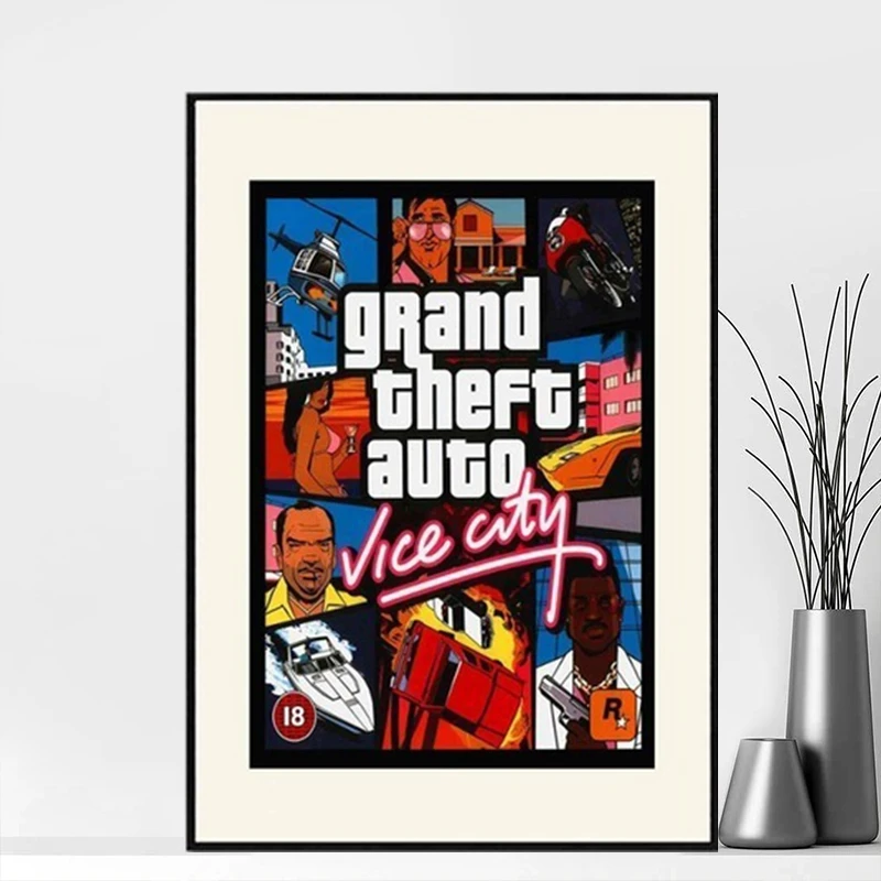 Винтажная Картина на холсте GTA 5, Сан-Андреас, вице-город, постер с художественным принтом, настенные картины для комнаты, украшение для дома, Настенный декор