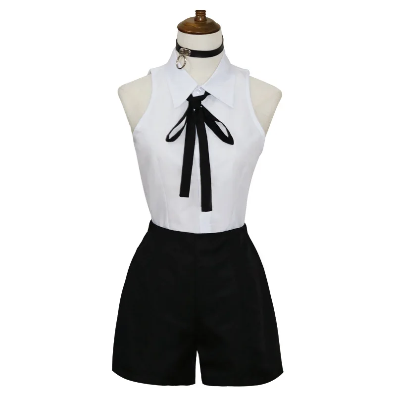 Аниме бензопила человек Reze парик для косплея костюм для взрослых женщин наряды Сексуальная майка без рукавов и Шорты ожерелье с бантом-галстуком-бабочкой на Хэллоуин