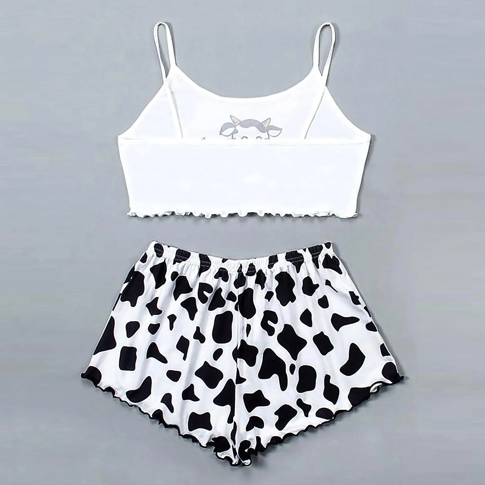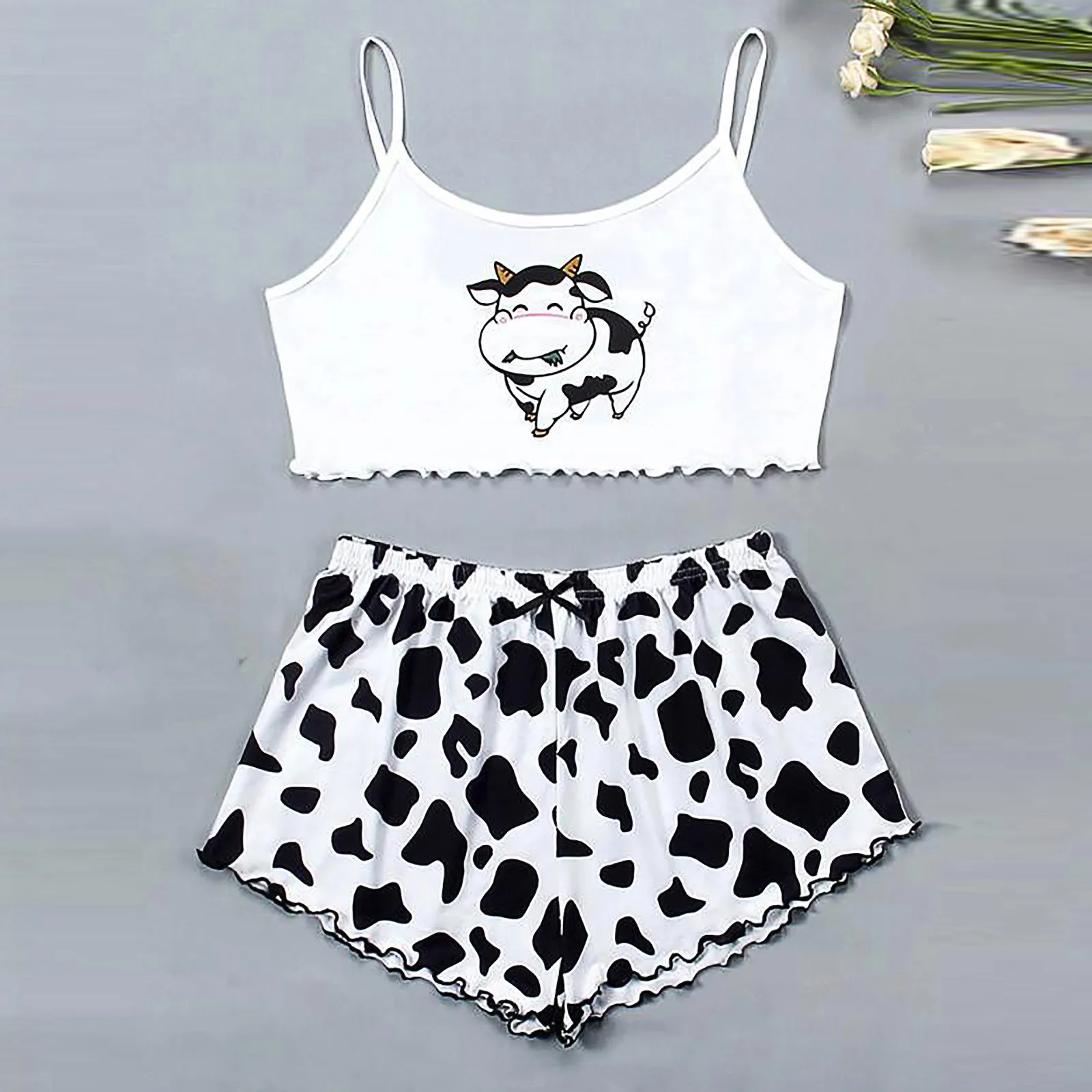 Пижама женская, с принтом коровы, кружевная, для лета, # T2G