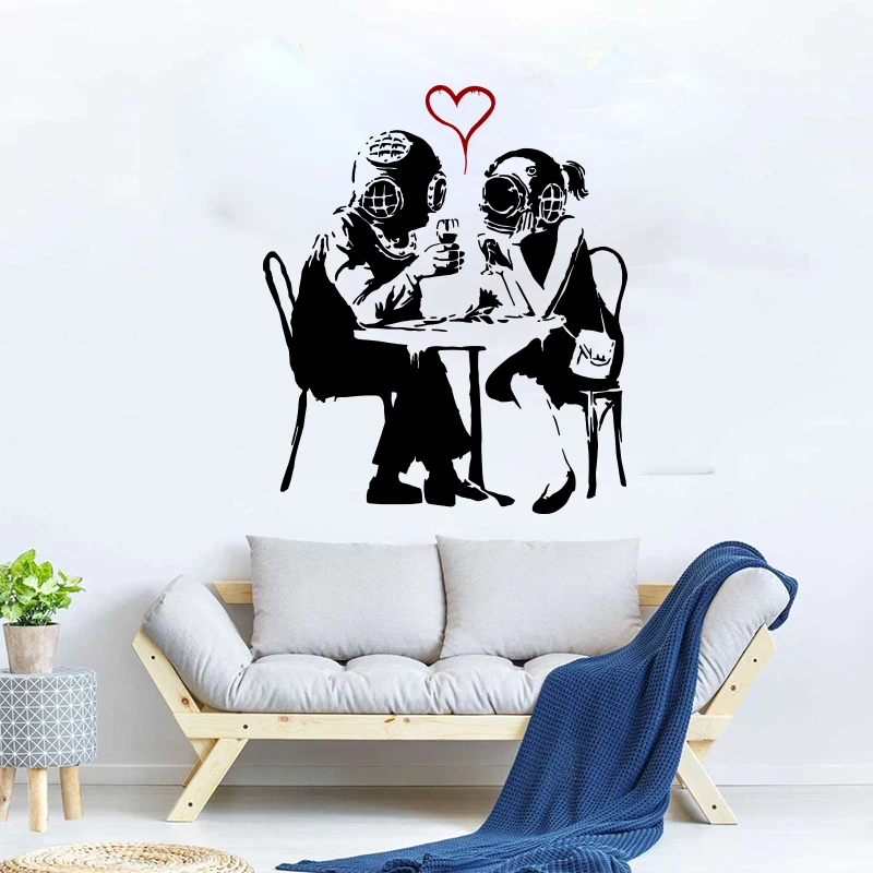 Свадебные Бэнкси Diver любовь Уличный настенный Стикеры Спальня Гостиная граффити пара Наклейка на стену в виде сердца винил домашний декор