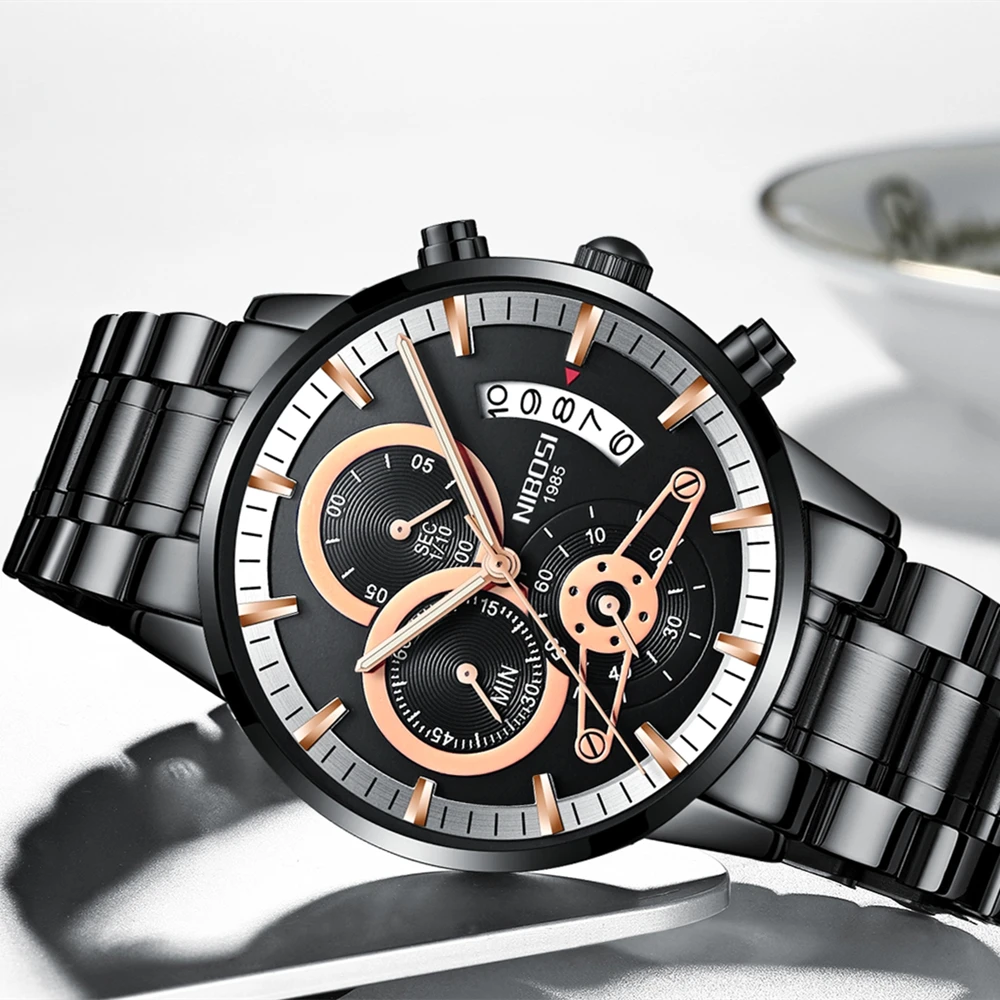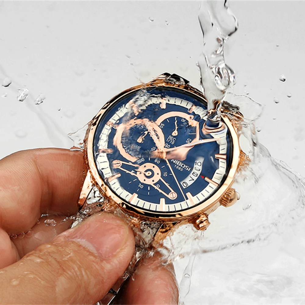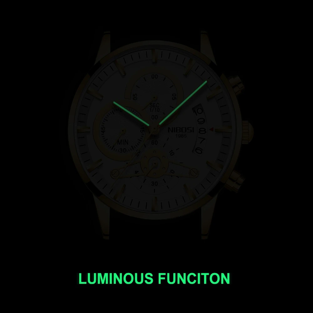 Часы наручные NIBOSI Мужские кварцевые, модные роскошные Брендовые спортивные водонепроницаемые светящиеся в стиле милитари, с автоматической датой