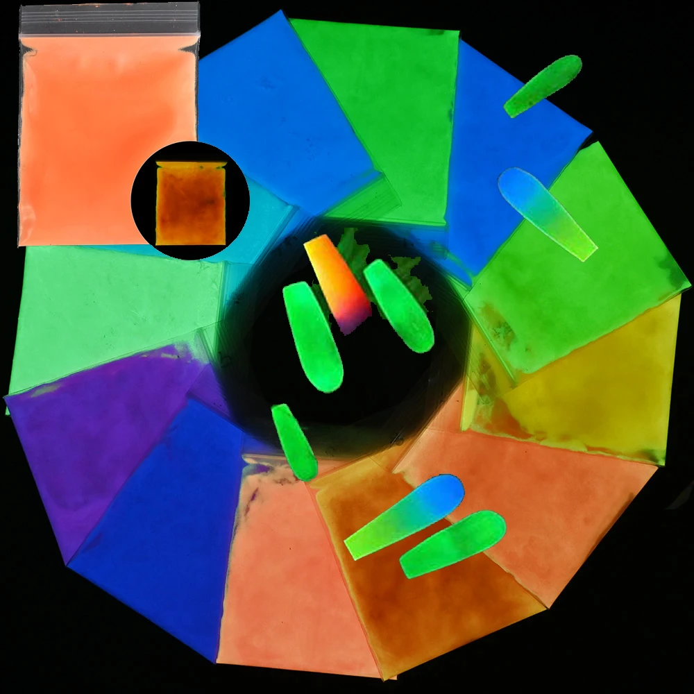 10 гупак. 12 Цветов нейл-арта светится в темноте пигмент украшения Люминесцентная длинная-прочный лак для ногтей фотолюминесцентный порошок KSD04