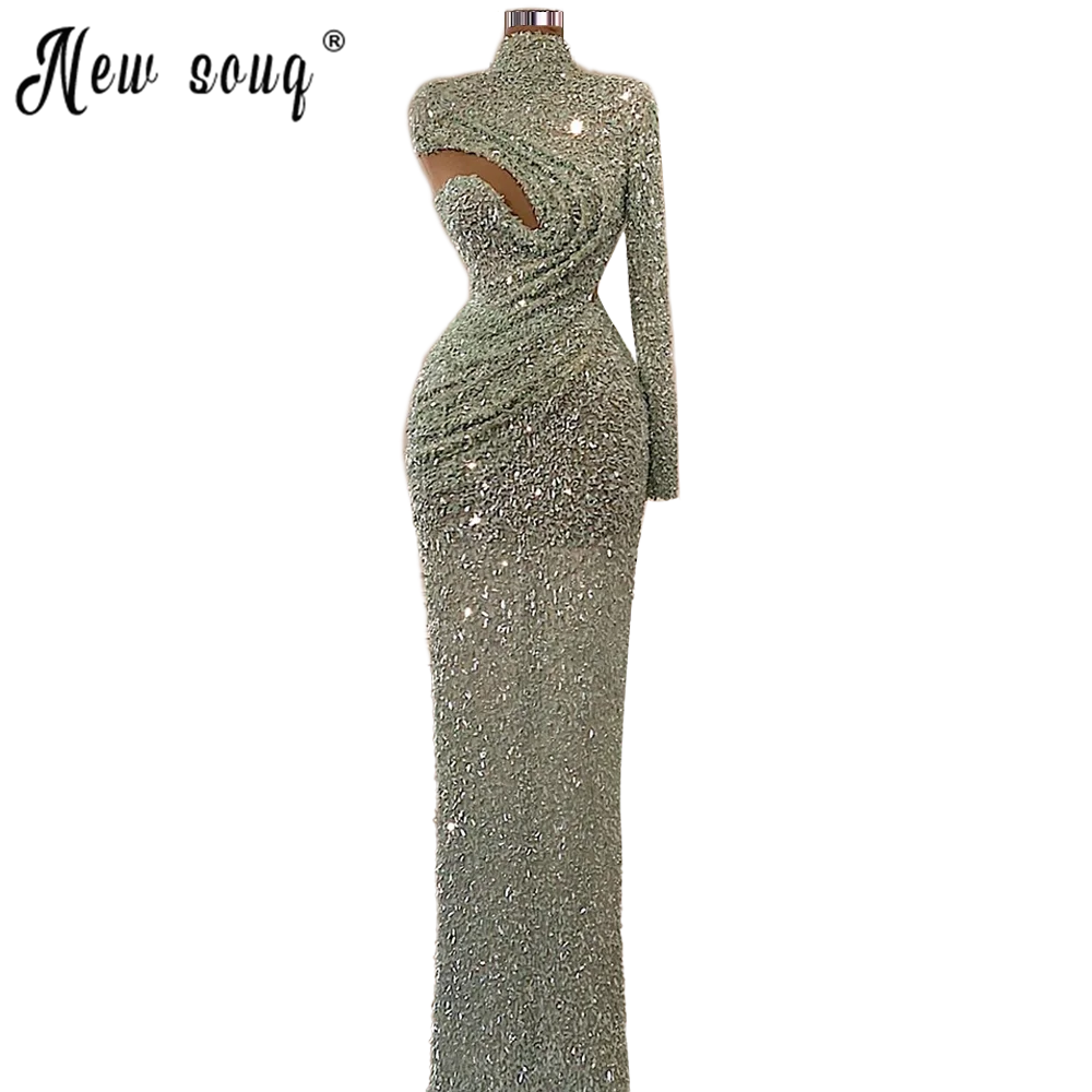 Зеленое выпускное платье длиной до пола с открытыми плечами, длинное платье с блестками и мусульманским бисером, вечернее платье, 2021