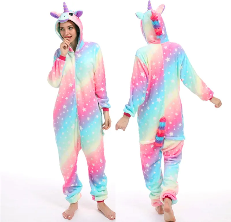 Пижамный комплект унисекс, фланелевая одежда для сна, комбинезон в виде единорога, мультяшный Тоторо, для мужчин и женщин, зимние костюмы в стиле аниме, для взрослых