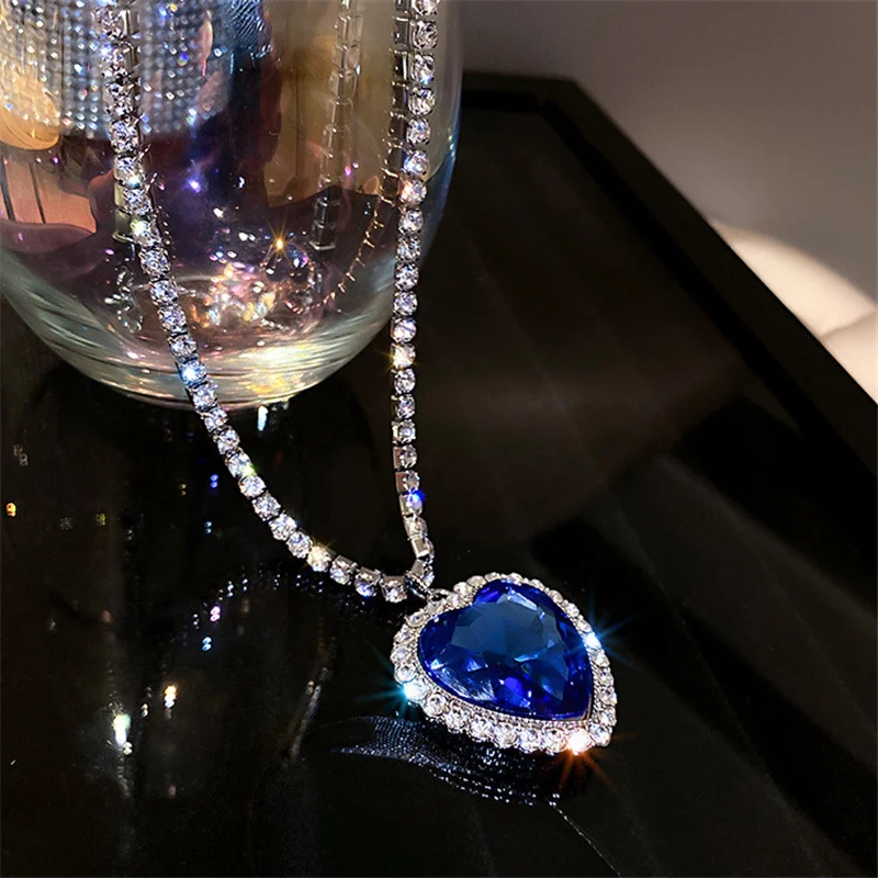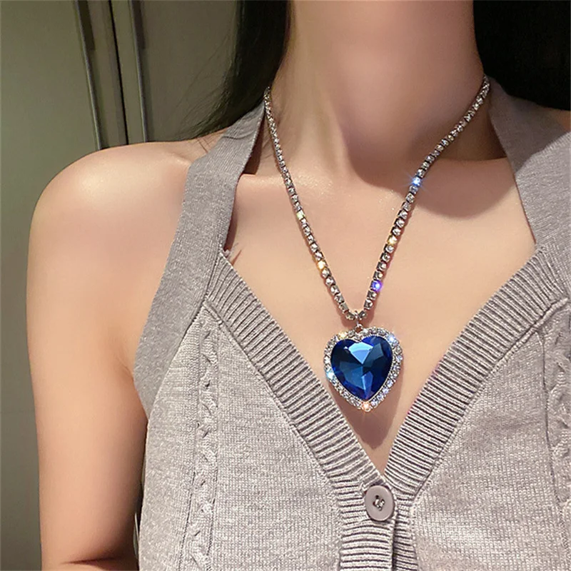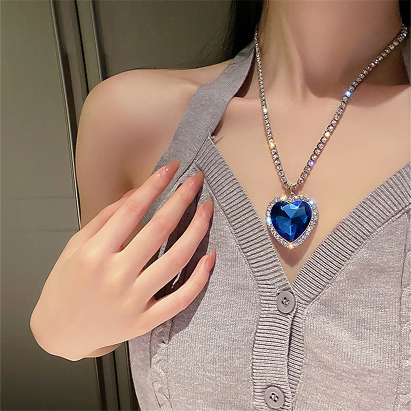 FYUAN ожерелья с синим сердцем и кристаллами для женщин Длинная цепочка ожерелья с подвесками эффектные ювелирные изделия