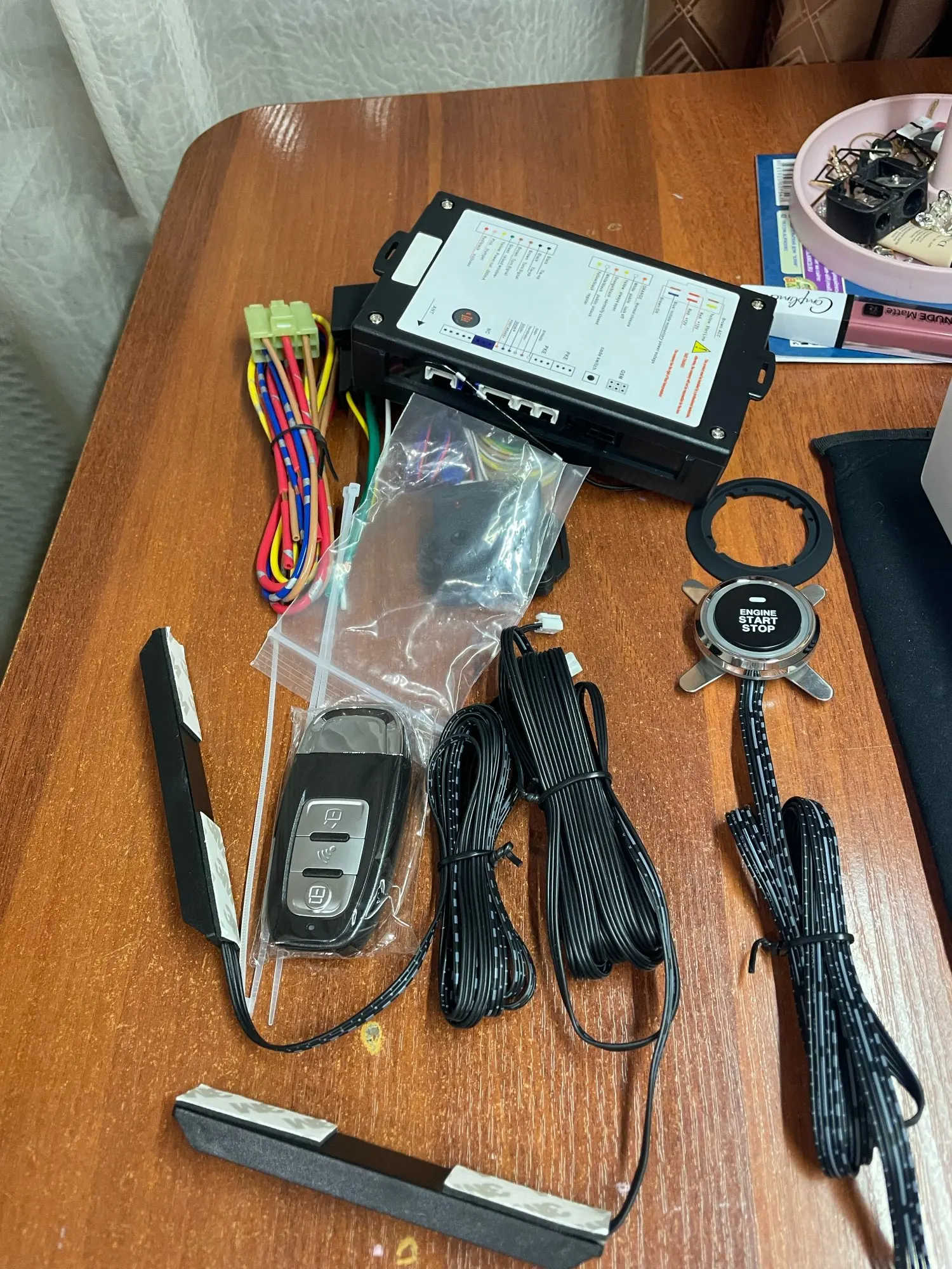 2 * Дистанционный keys1 * контроллер системы зажигания 4 * установка проводки harness1 * пусковая кнопка остановки 1 * Инструкция 1 * датчик столкновения 2 * низкочастотные индукционные антенны 1 * противоугонное реле отключения питания