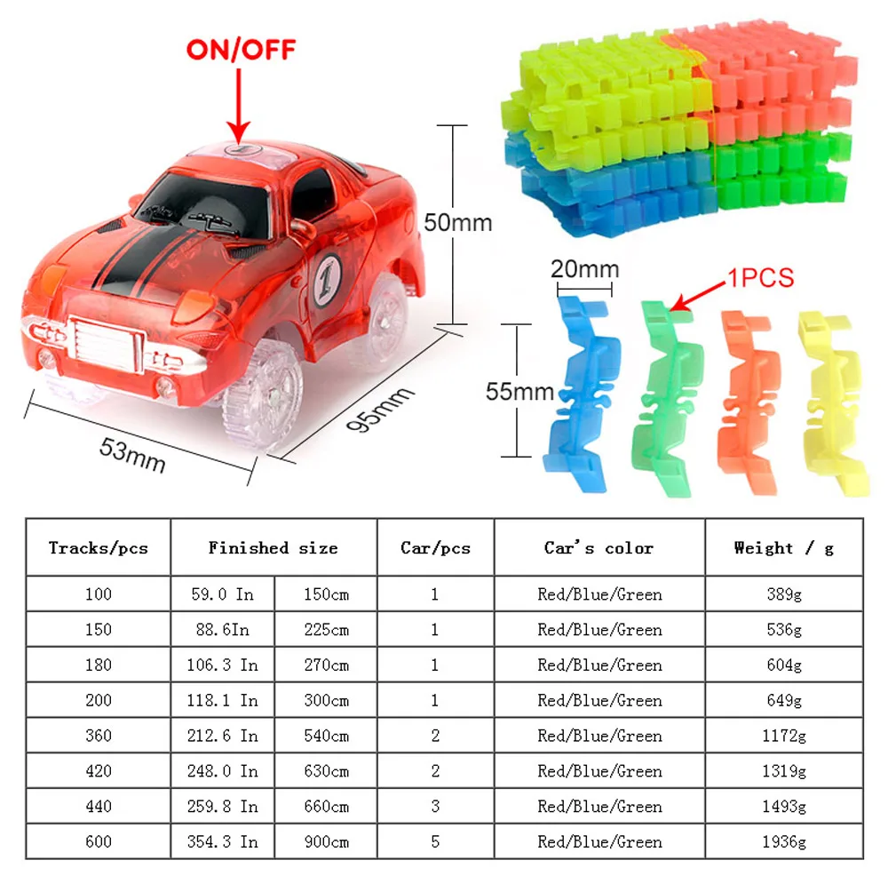 Волшебные треки, головоломки, игрушки, гибкие, светящиеся, гоночный автомобиль, Игрушечный трек, набор, флеш в темноте, рельсы, игрушки для мальчиков, подарки на день детей