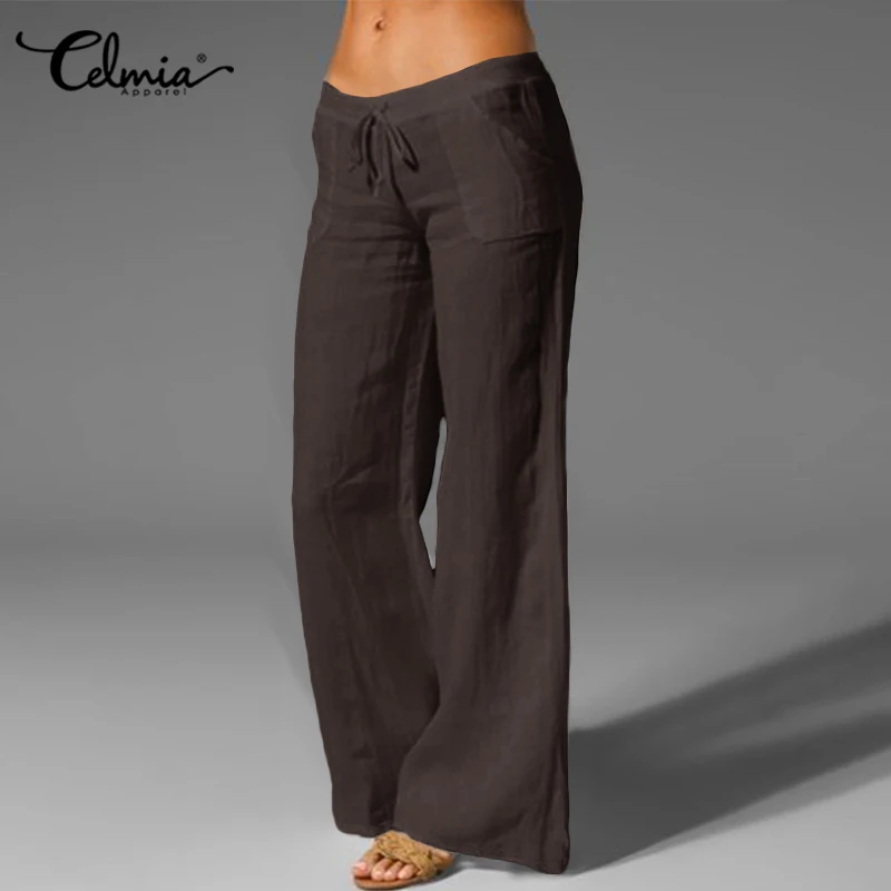 Осенние широкие брюки большого размера Celmia женские Винтажные льняные длинные брюки палаццо модные повседневные однотонные брюки с эластичным поясом 5XL