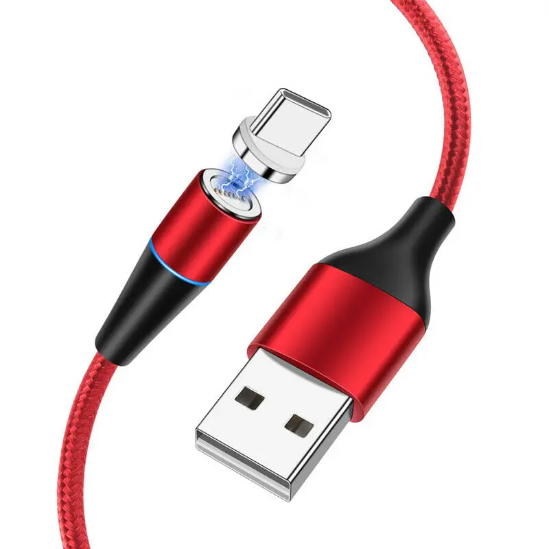 Магнитный кабель UGI Type C вращающийся на 360 ° Магнитный кабель 3A для быстрой зарядки USB C кабель для Xiaomi RedMi с оплеткой красного цвета