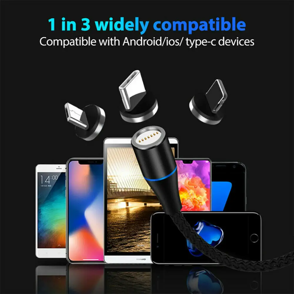 УГИ 3A Быстрая зарядка Магнитный кабель для IOS Кабель с разъемом типа C USB-C и Micro USB Android для подключения кабеля к кабелю для Xiaomi RedMi Samsung Плетеный мобильный телефон