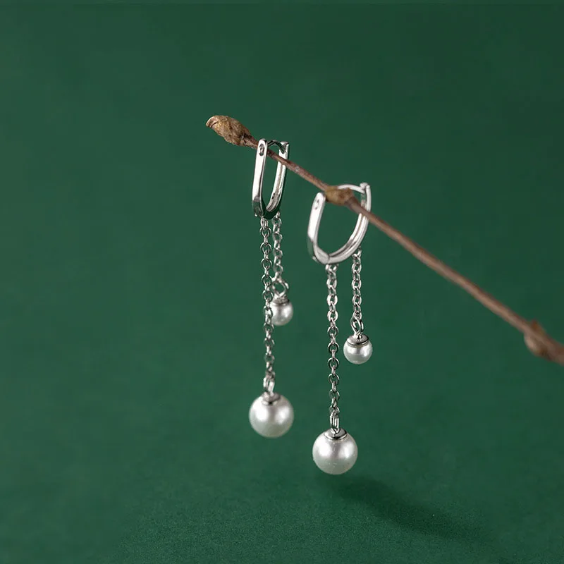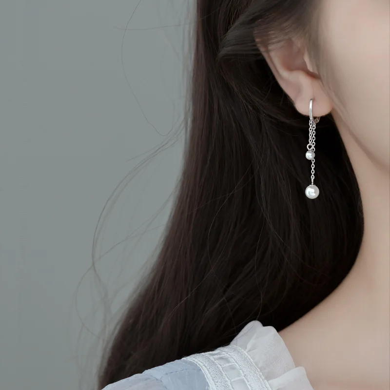 Женские серьги-кольца из серебра 925 пробы, с подвеской и жемчугом