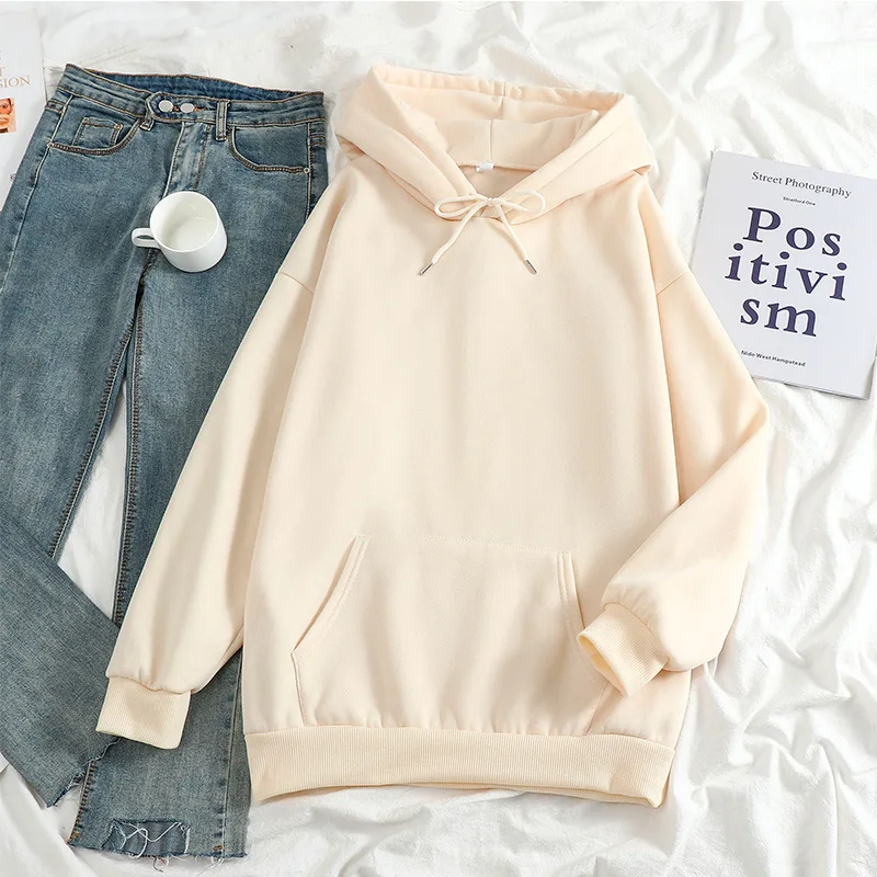 Женские толстовки оверсайз, однотонные толстовки с длинным рукавом, Теплые повседневные женские толстовки L...