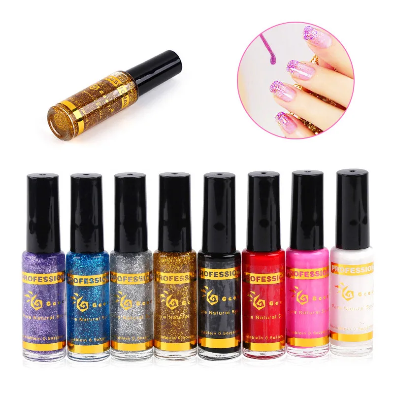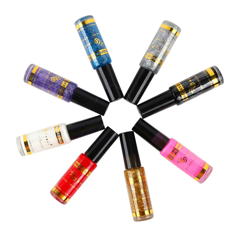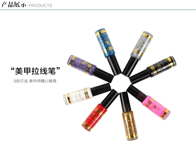Ручка для дизайна ногтей с Тонкой кисточкой, 7 цветов, ручка для дизайна ногтей + кисть для раскрашивания ногтей, лаки для дизайна ногтей + мерцающие