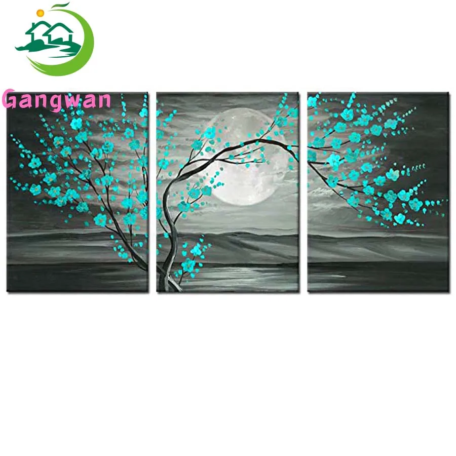 5d diy Алмазная Картина 3 шт. серых и синих зеленых цветочных сливовых деревьев, полностью квадратные круглые стразы, вышивка, декор для стен