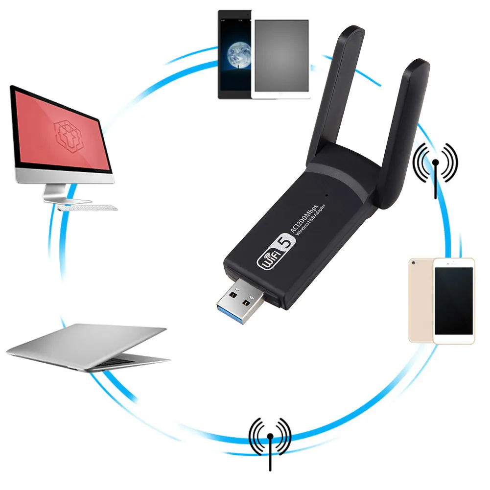 USB Wi-Fi адаптер 1200 Мбитс, 2,4 ГГц + 5,8 ГГц, двухдиапазонный Wi...
