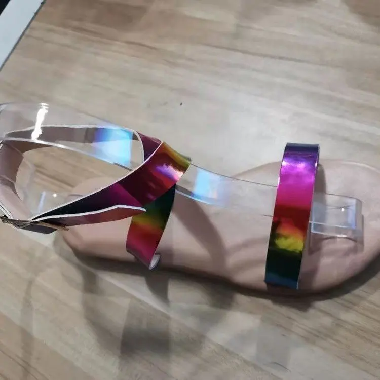 Сандалии женские пляжные радужные, босоножки на плоской подошве, открытый носок, разные цвета, модная обувь, 20 штук